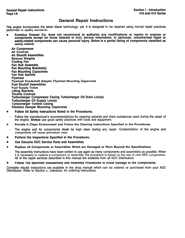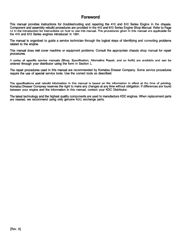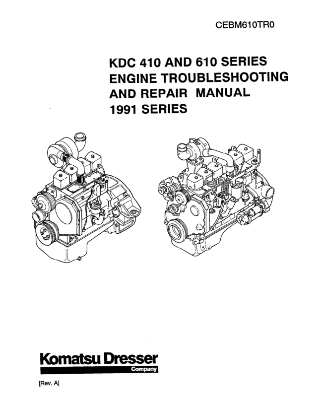Komatsu KDC410 610 Diesel Engine Troubleshooting and Repair Manual