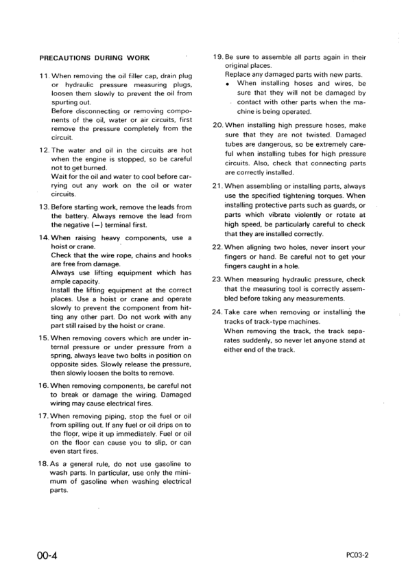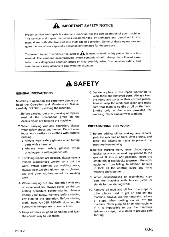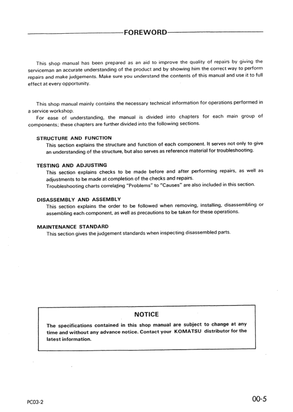 Komatsu PC03-2 Excavator Workshop Manual SN 21587 and UP