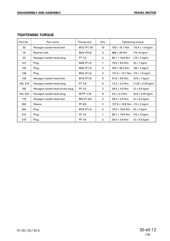 Komatsu PC100-6 PC120-6 PC120LC-6 PC130-6 Excavator Workshop Manual