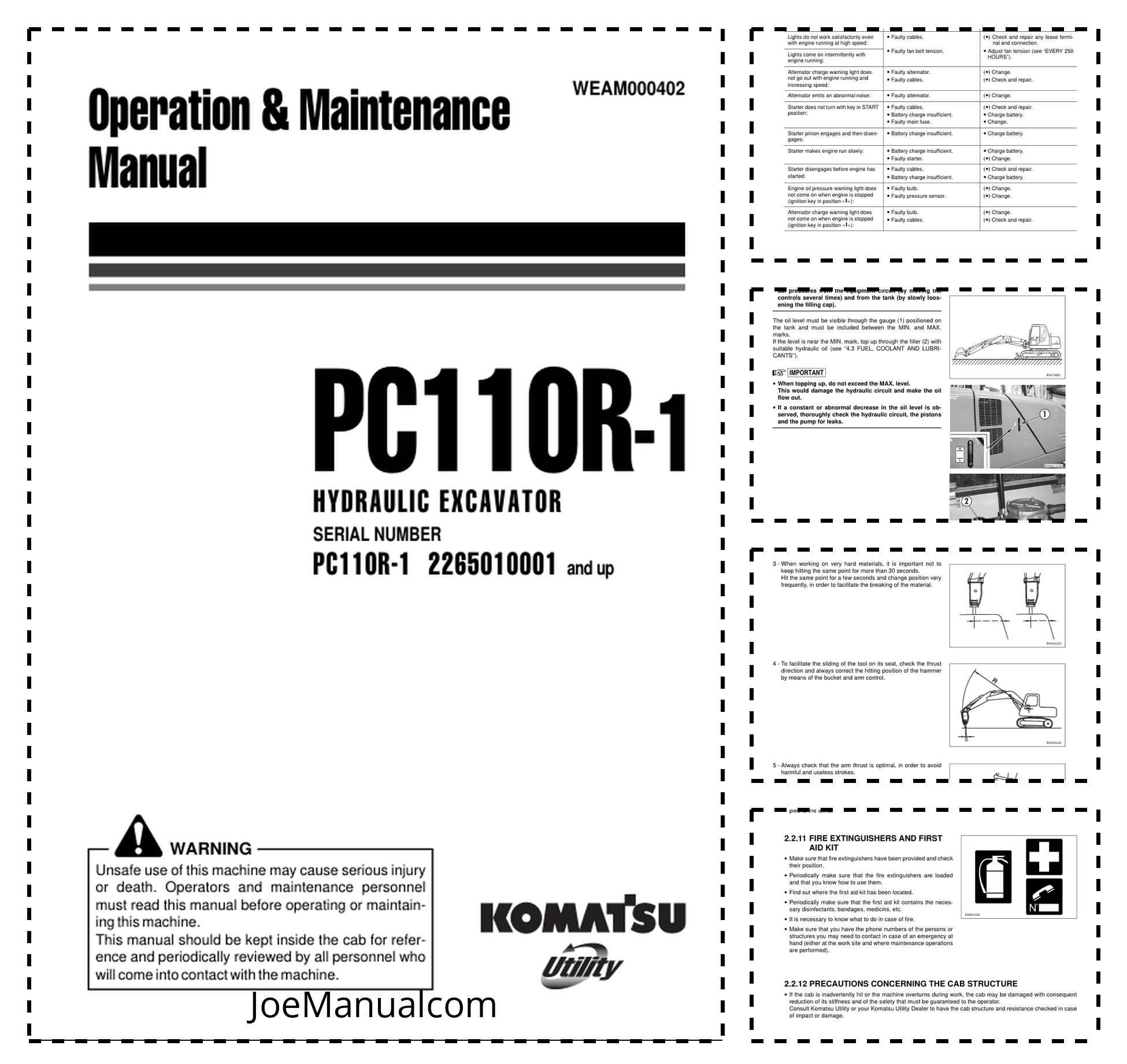 Komatsu PC110R-1 Excavator Operation and Maintenance Manual SN 2265010001 and UP