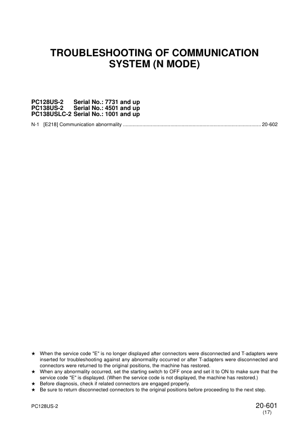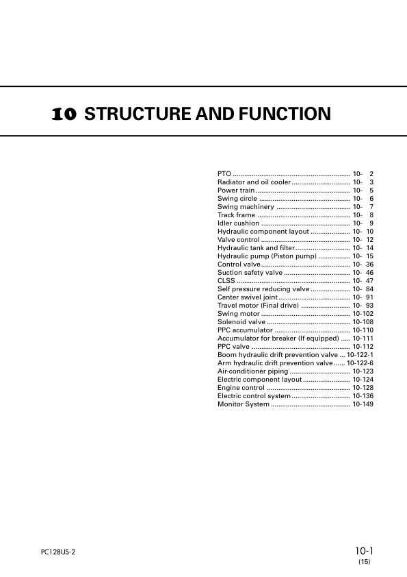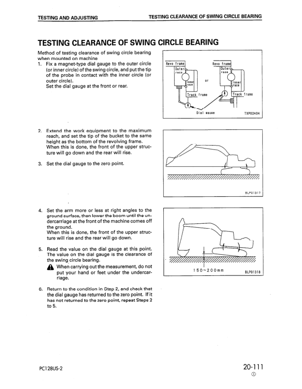 Komatsu PC128US-2 PC138US-2 PC138ISLC-2E0 Excavator Workshop Manual