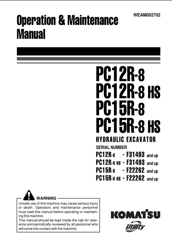 Komatsu PC12R-8 PC15R-8 Excavators Operation Manual