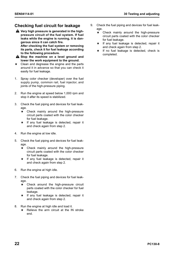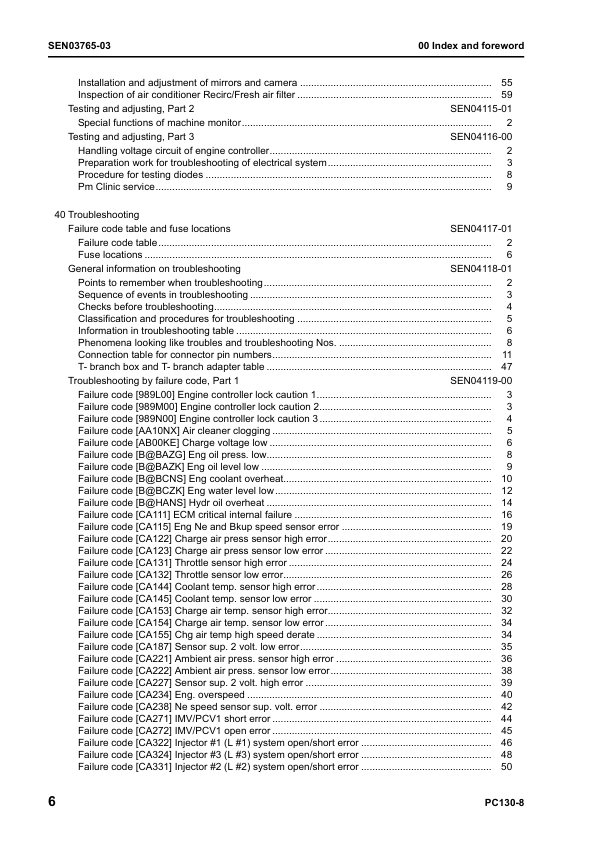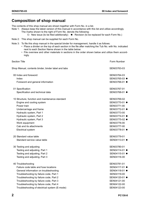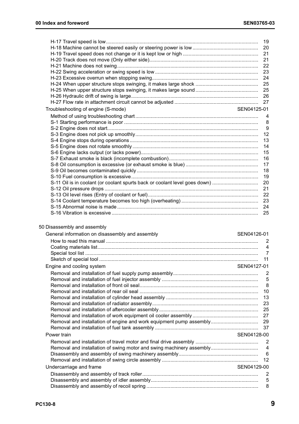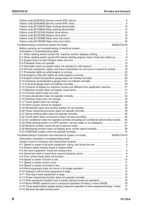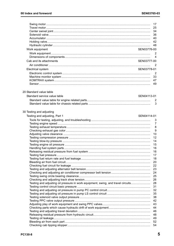 Komatsu PC130-8 Excavator Workshop Manual SN C30001 and UP