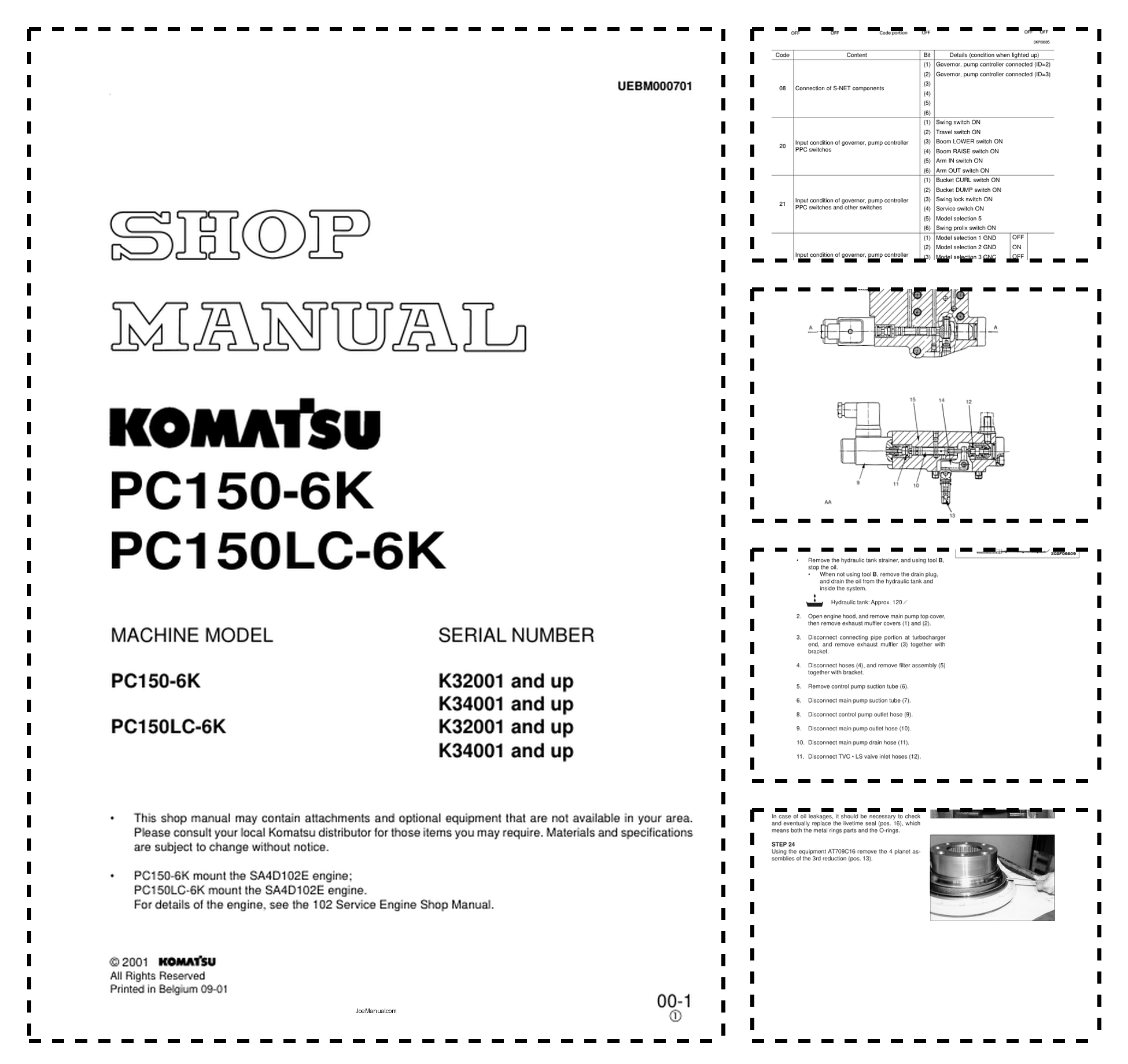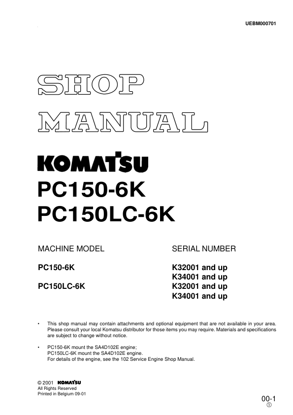 Komatsu PC150-6K PC150LC-6K Excavator Workshop Manual SN K32001 K34001 and UP