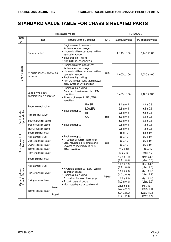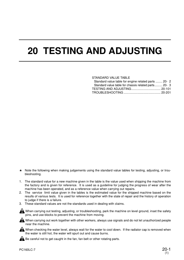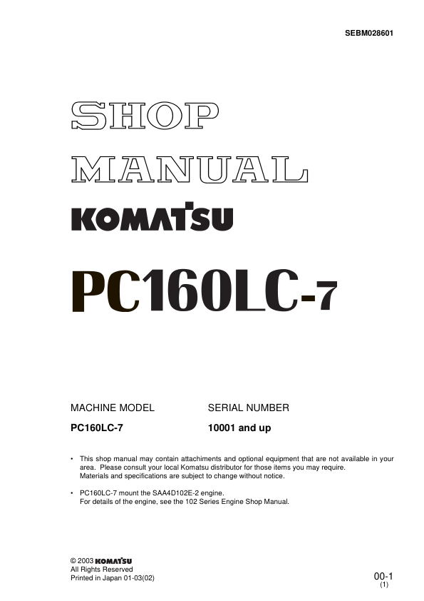 Komatsu PC160LC-7 Excavator Workshop Manual SN 10001 and UP SEBM028601