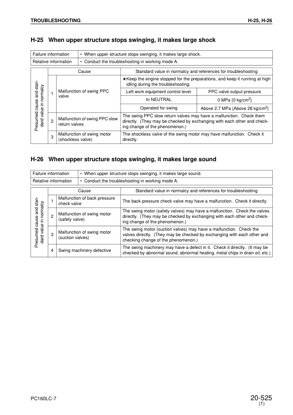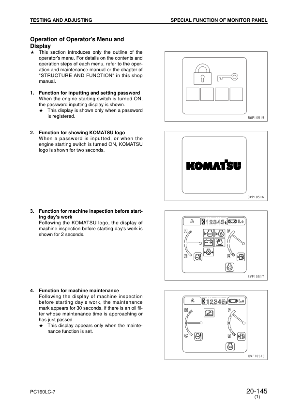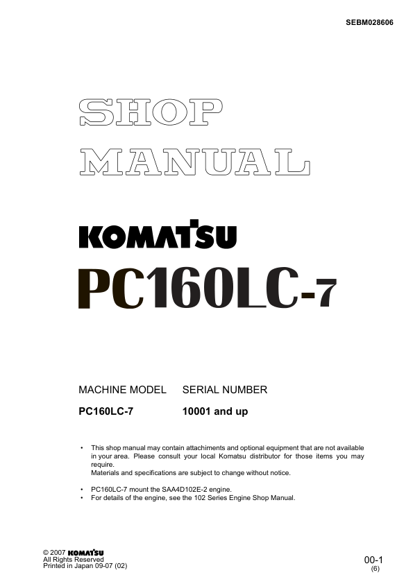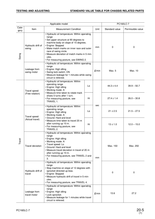 Komatsu PC160LC-7 Excavator Workshop Manual SN 10001 and UP