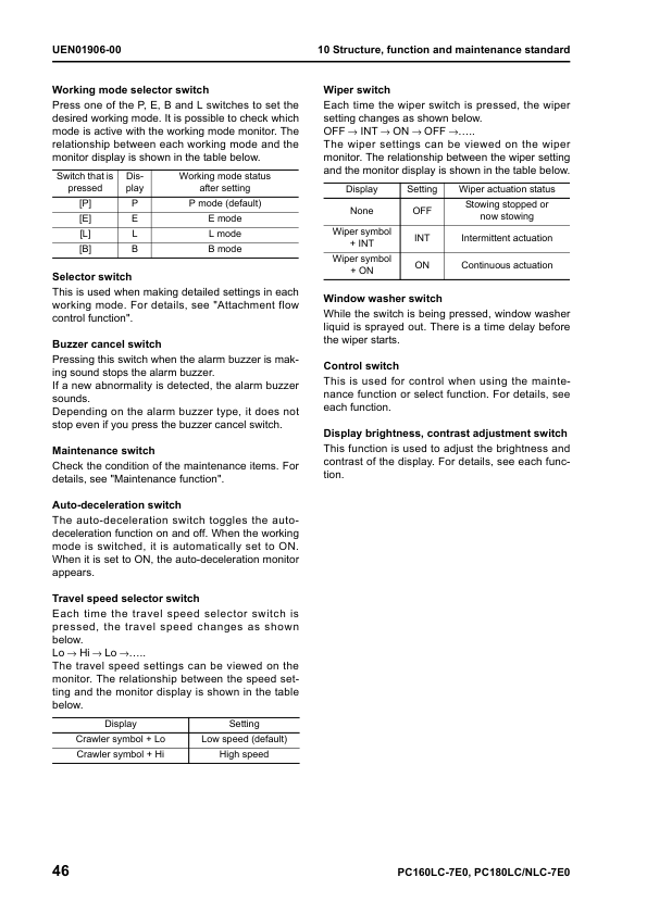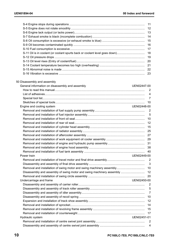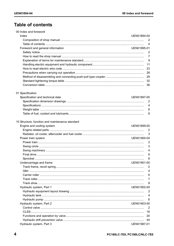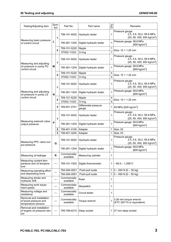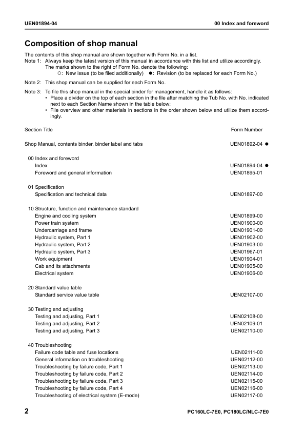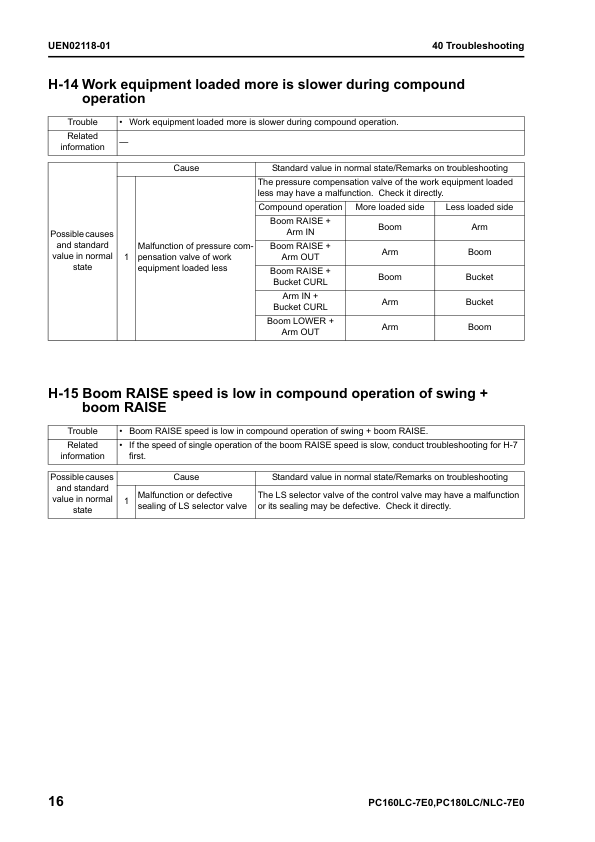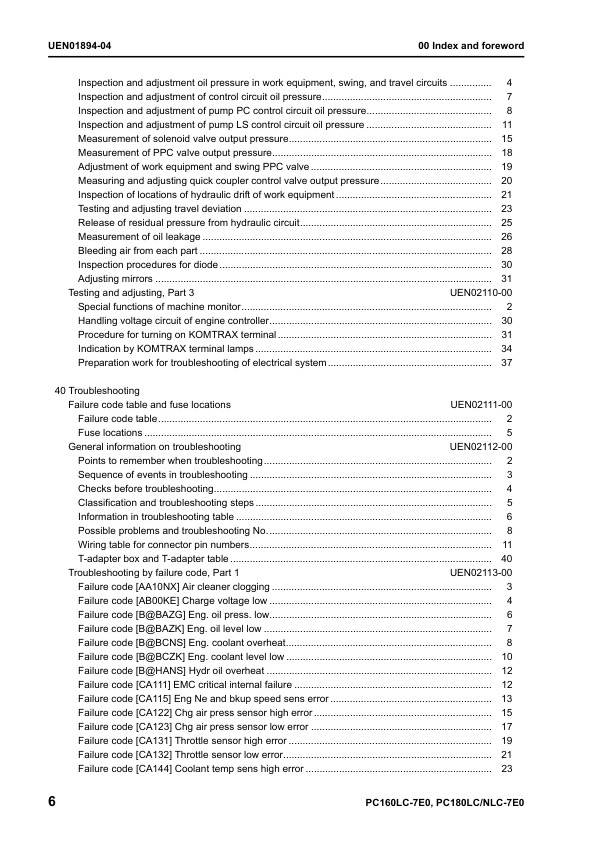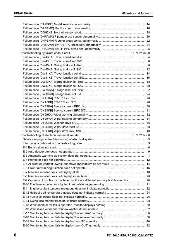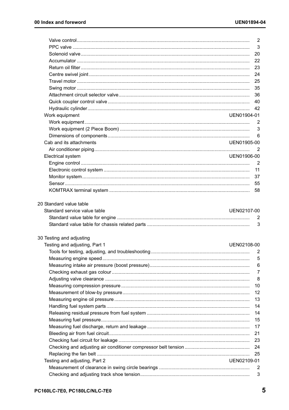 Komatsu PC160LC-7E0 PC180LC-7E0 PC180NLC-7E0 Excavator Workshop Manual SN K45001 and UP
