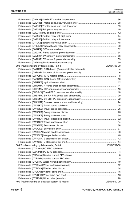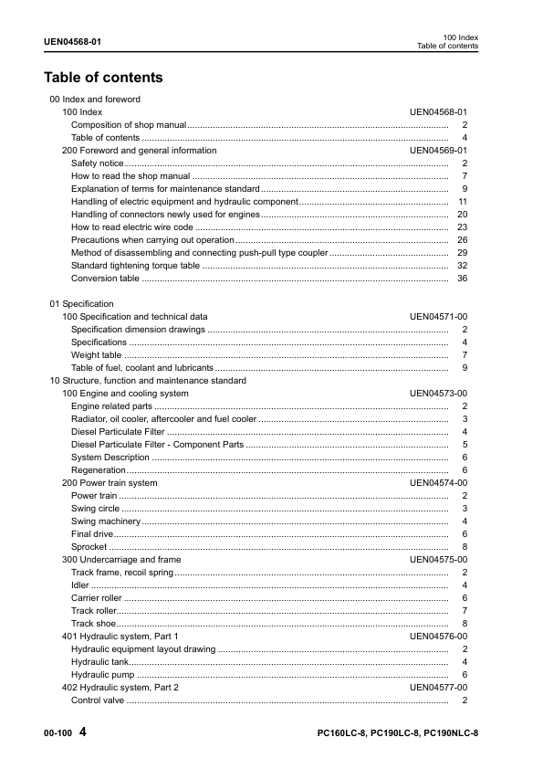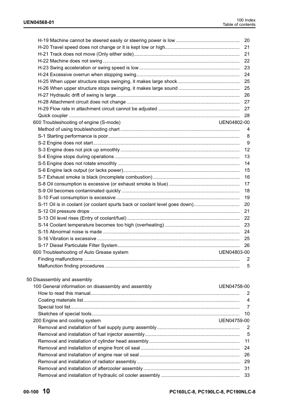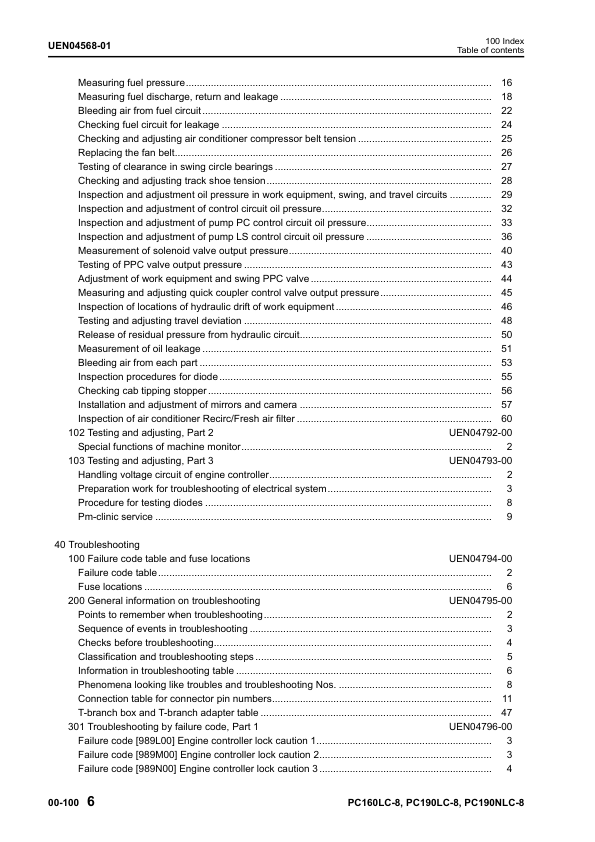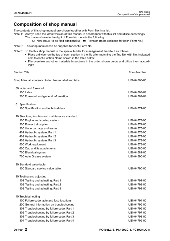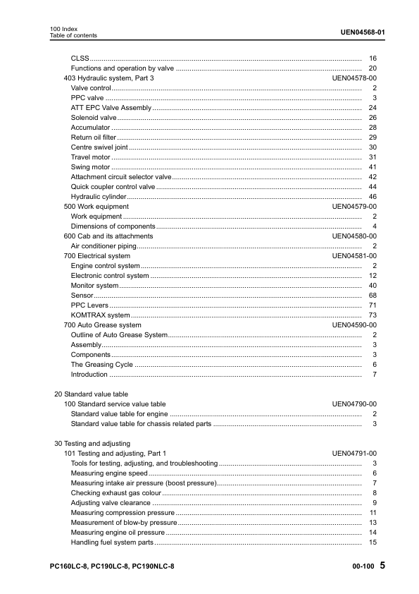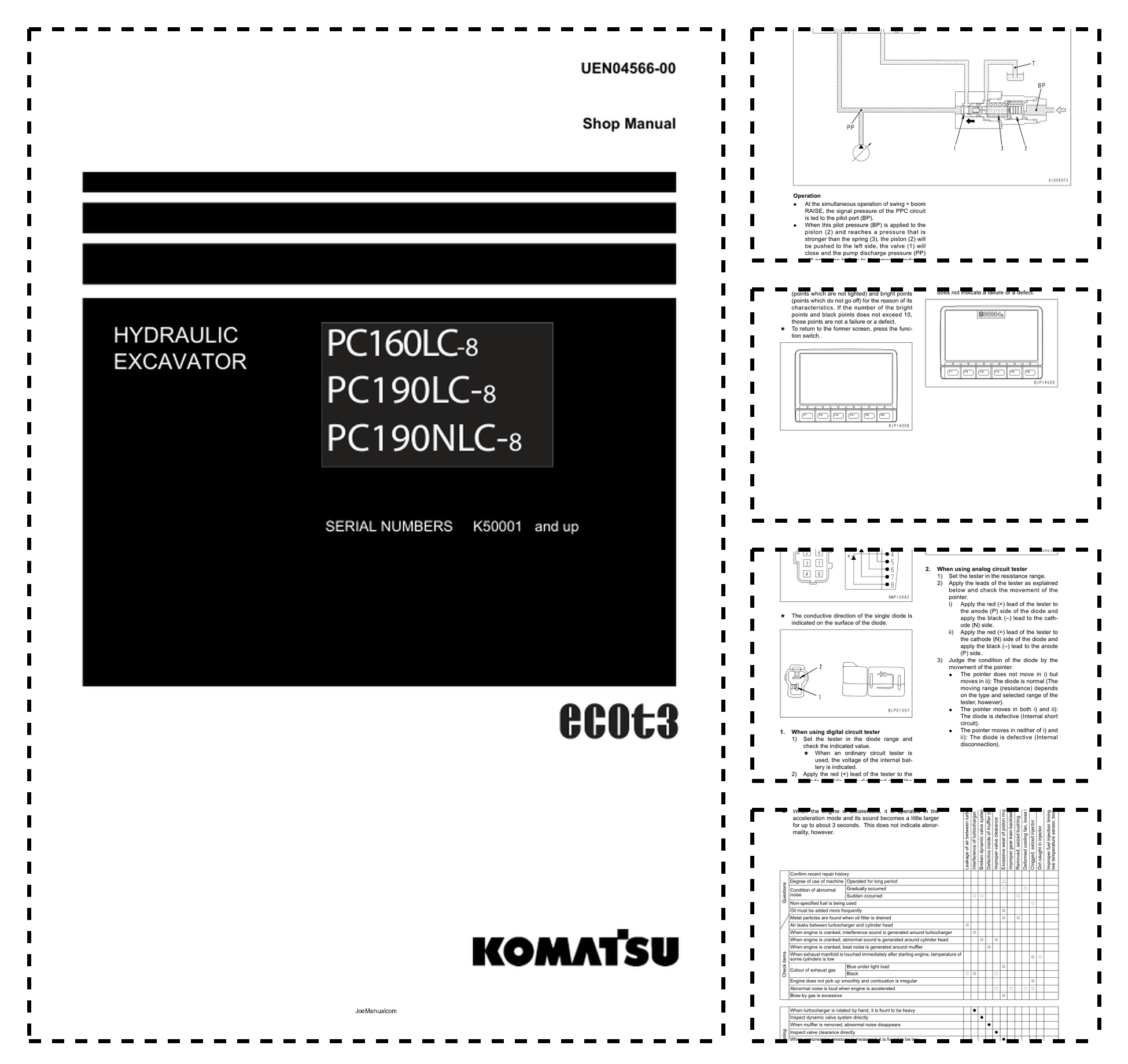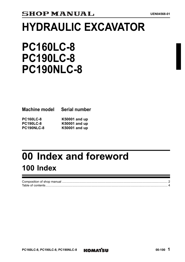 Komatsu PC160LC-8 PC190LC-8 PC190NLC-8 Excavator Workshop Manual SN K50001 and UP