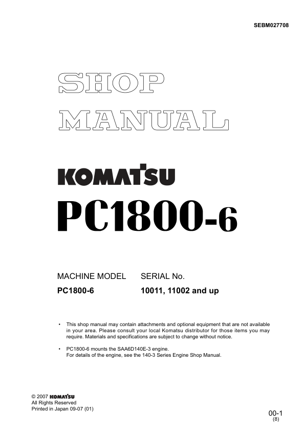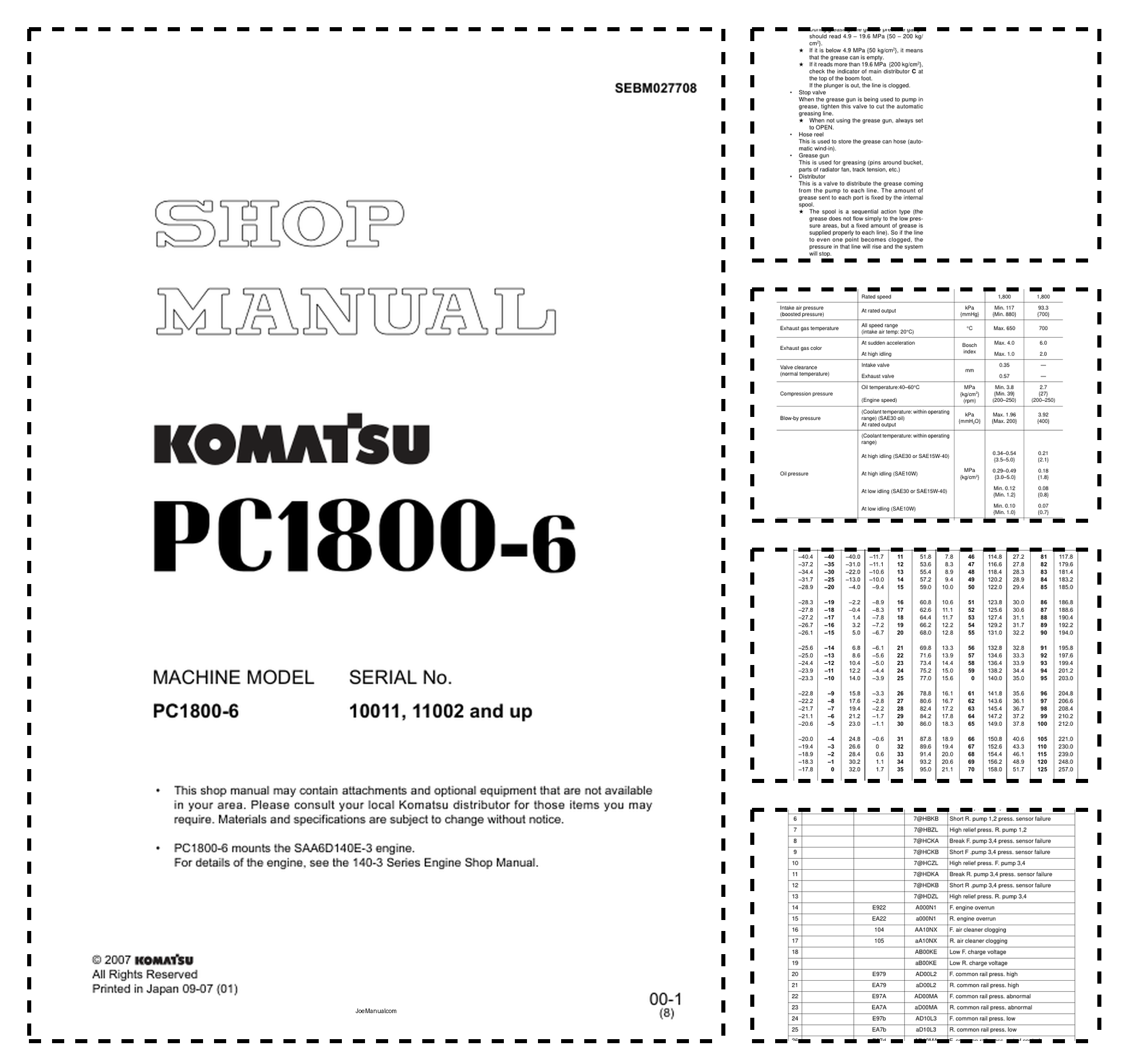 Komatsu PC1800-6 Mining Shovel Excavator Workshop Manual SN 10011 11002 and UP