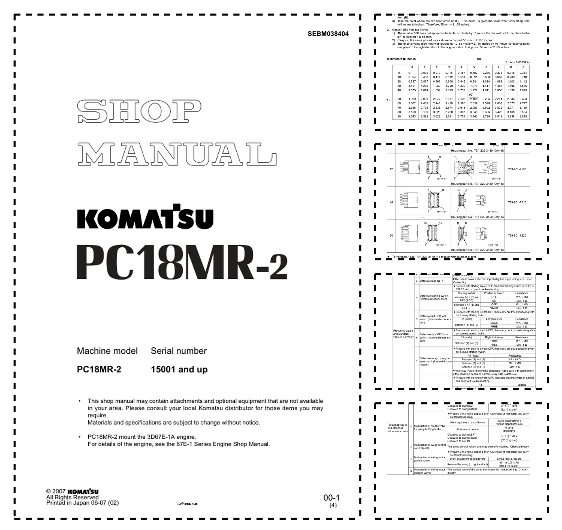 Komatsu PC18MR-2 Excavator Workshop Manual SN 10001 and UP