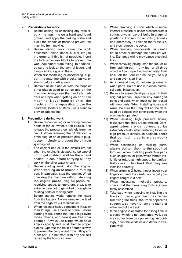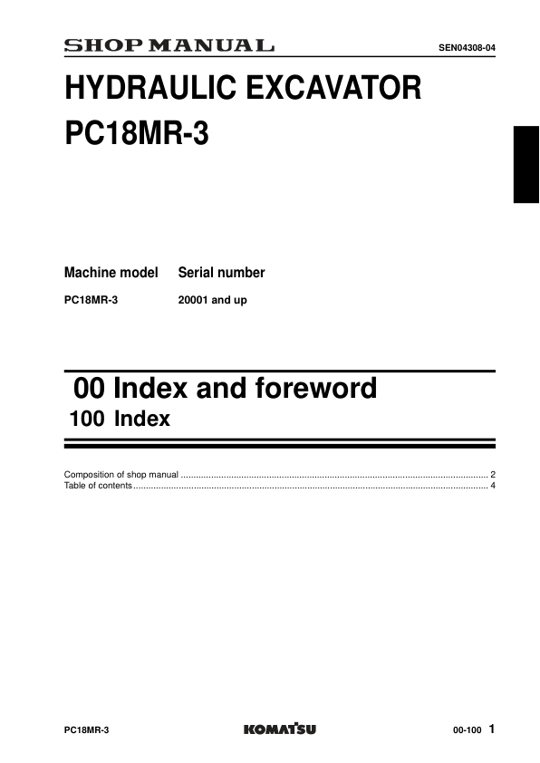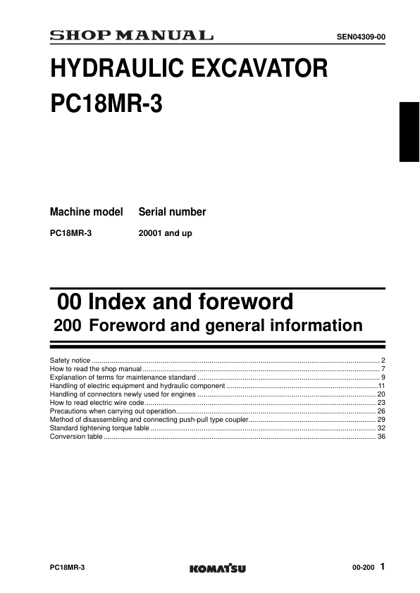 Komatsu PC18MR-3 Excavator Workshop Manual SN 20001 and UP