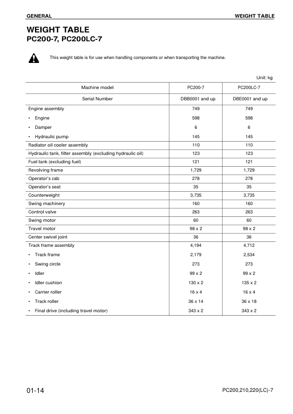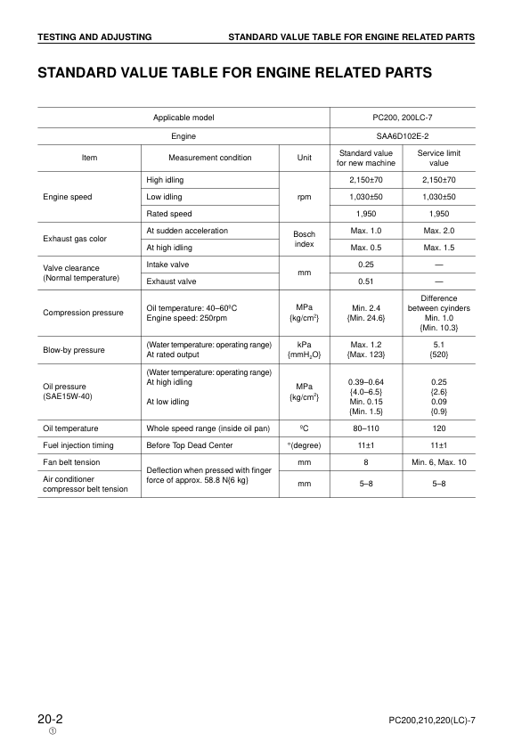 Komatsu PC200 210 220 LC-7 Excavator Workshop Manual