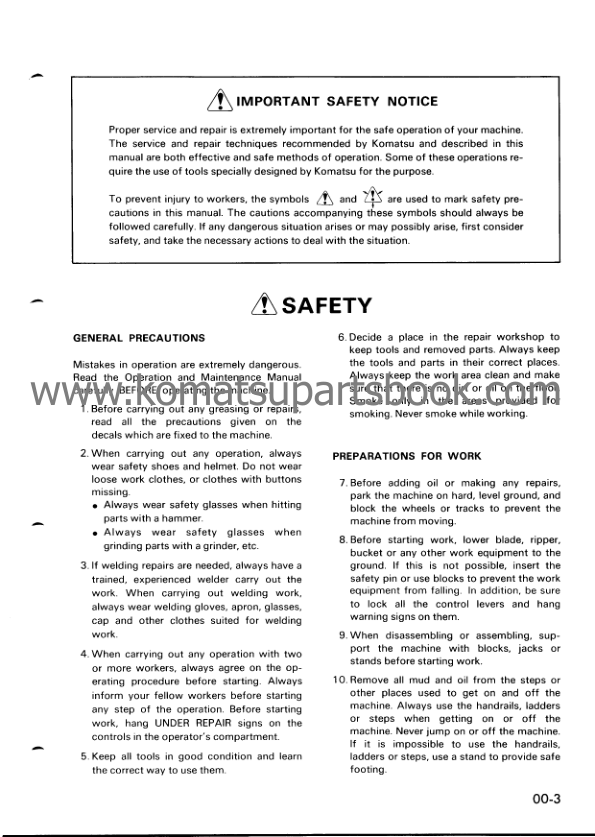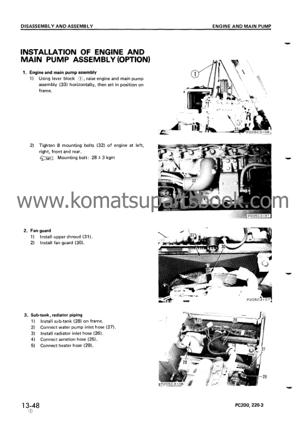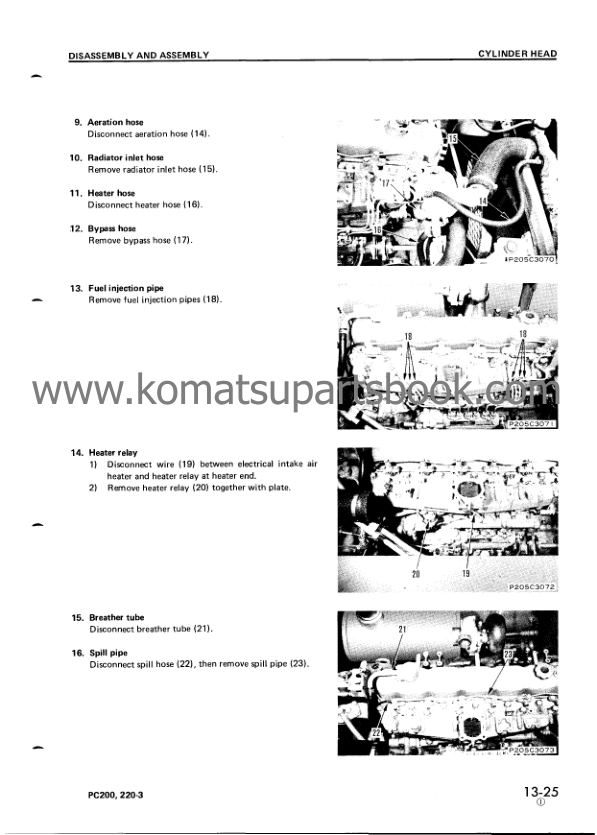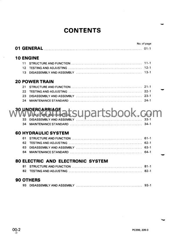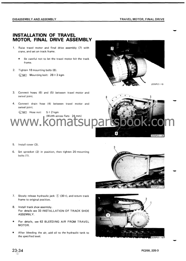 Komatsu PC200 PC210-3 PC220 PC240-3 Excavator Workshop Manual SN 20001 K10001 10001 and UP