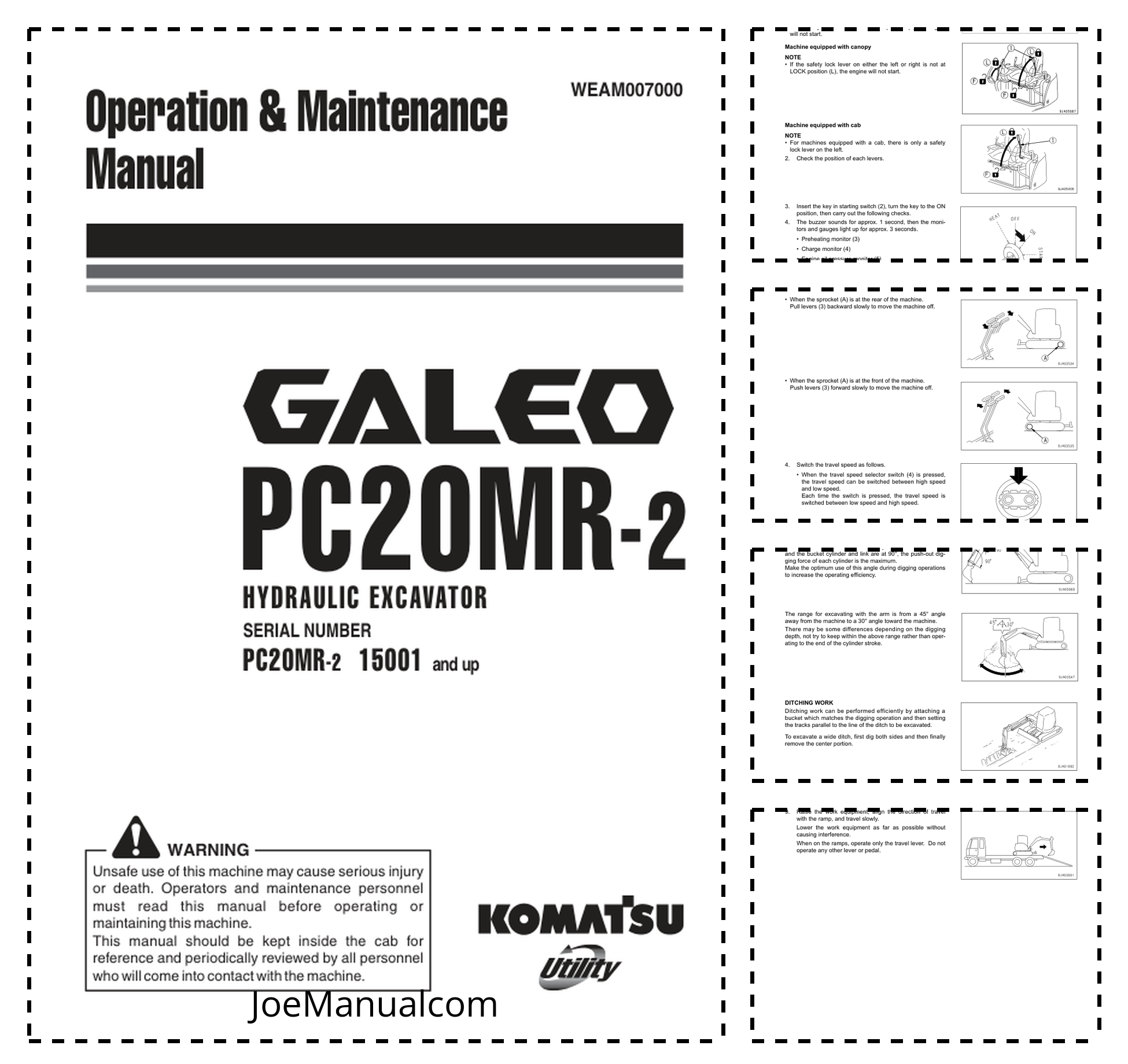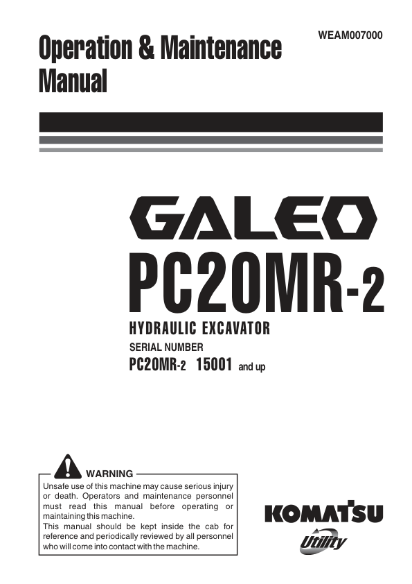 Komatsu PC20MR-2 Excavator Operation Maintenance Manual