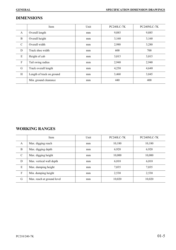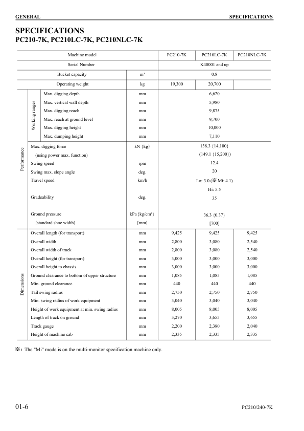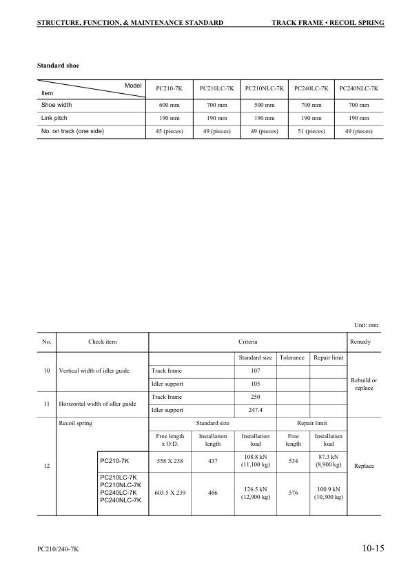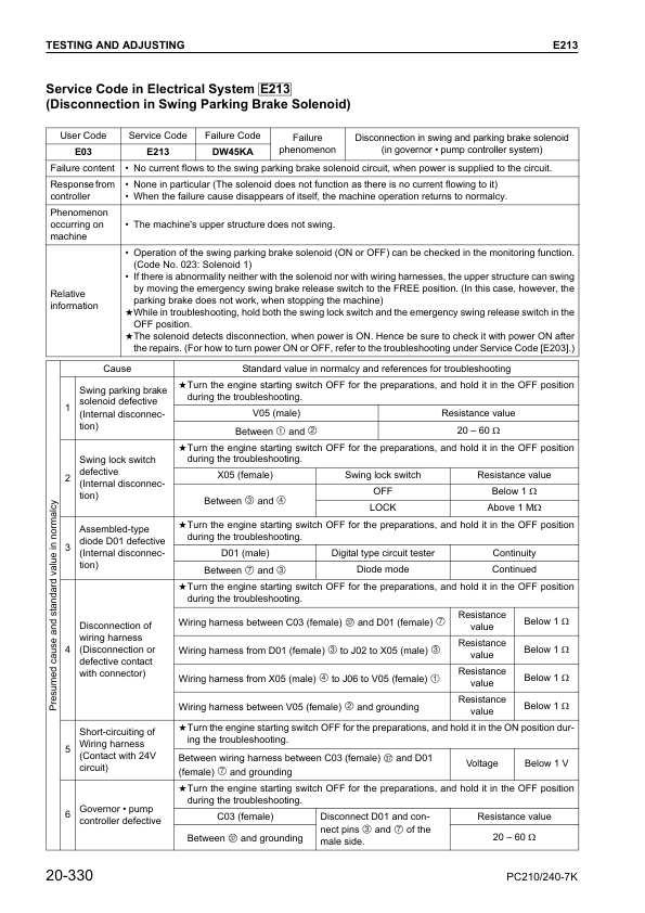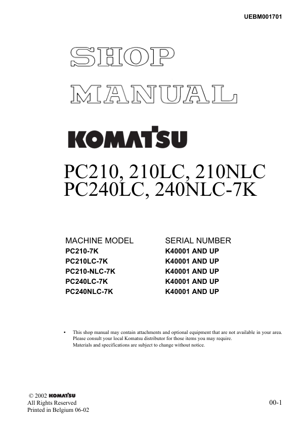 Komatsu PC210 210LC 210NLC PC240LC 240NLC-7K Excavator Workshop Manual SN K40001 and UP