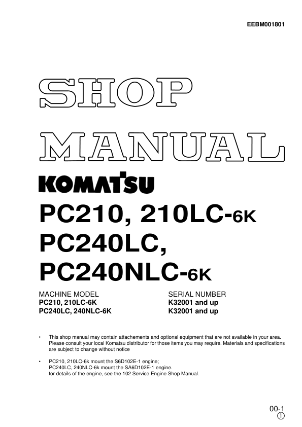 Komatsu PC210-6K PC240-6K Excavators Shop Manual