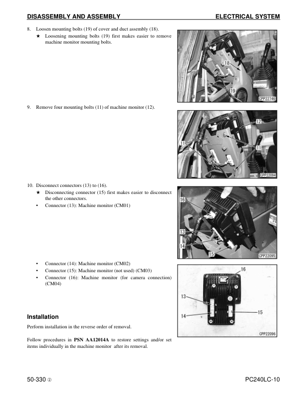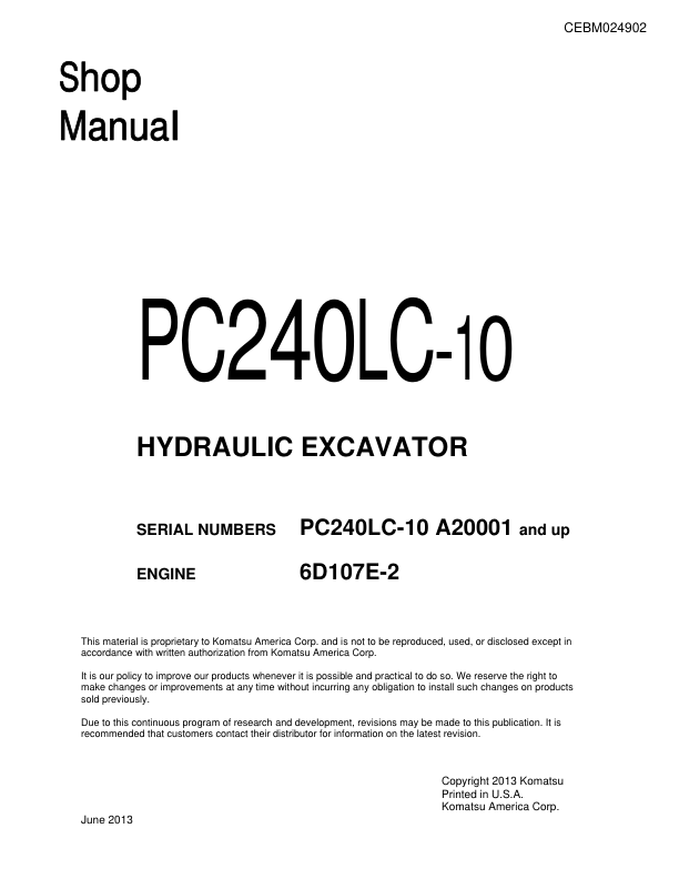 Komatsu PC240LC-10 Excavator Workshop Manual SN A20001 and UP