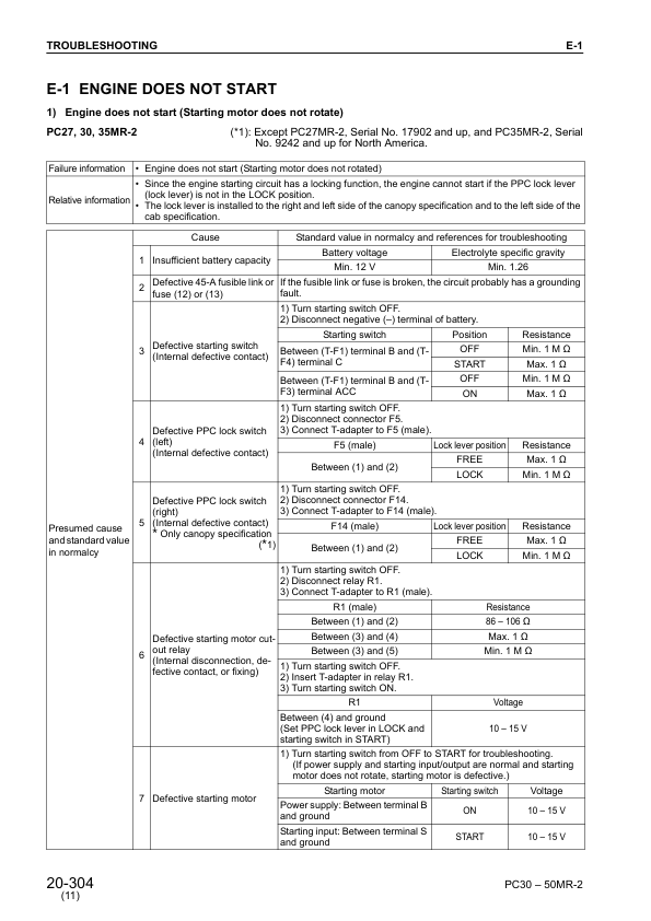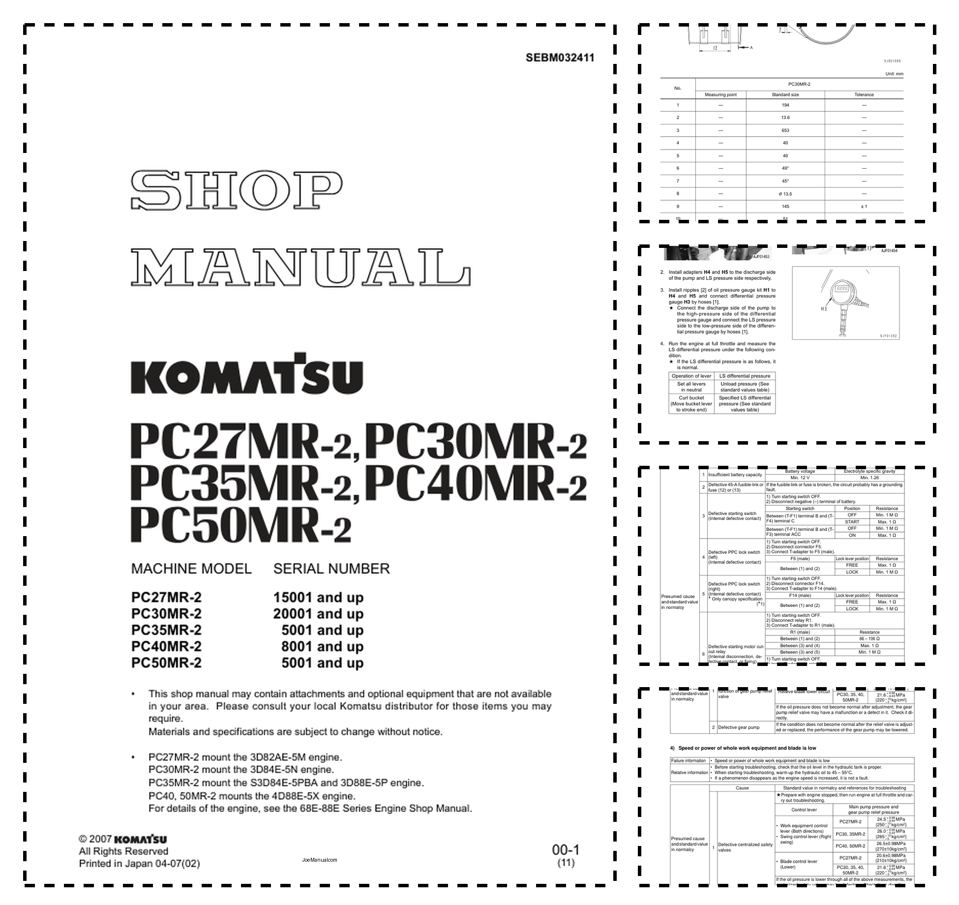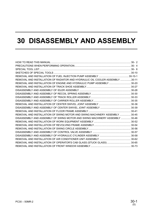 Komatsu PC27 30 35 40 50MR-2 Excavator Workshop Manual SN 15001 20001 5001 and UP