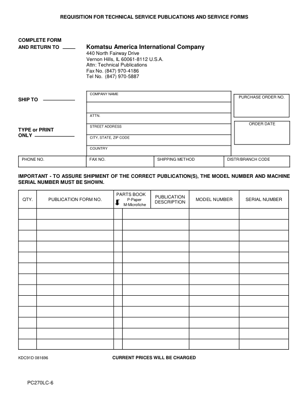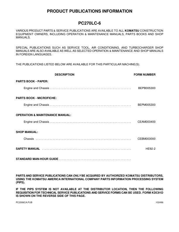 Komatsu PC270LC=6LE Excavator Workshop Manual SN A83001 and UP