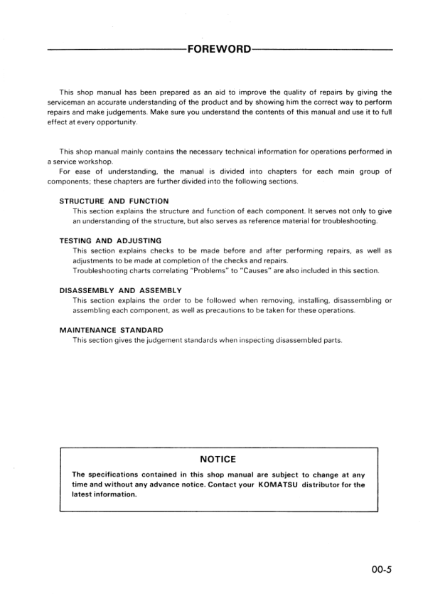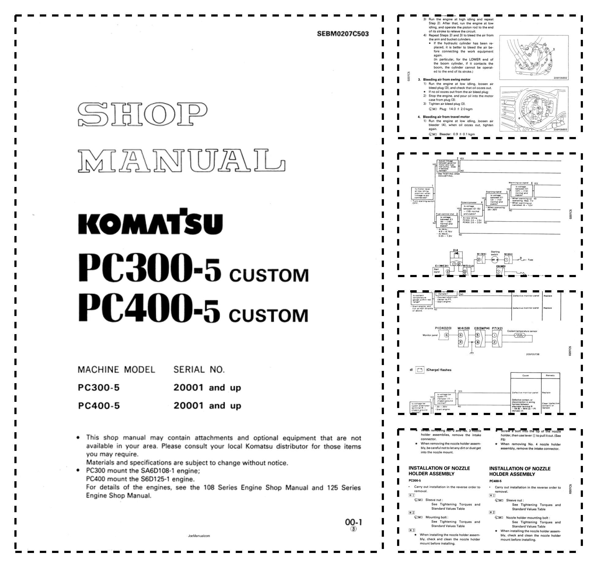 Komatsu PC300-5 PC400-5 Custom Excavator Workshop Manual SN 20001 and UP