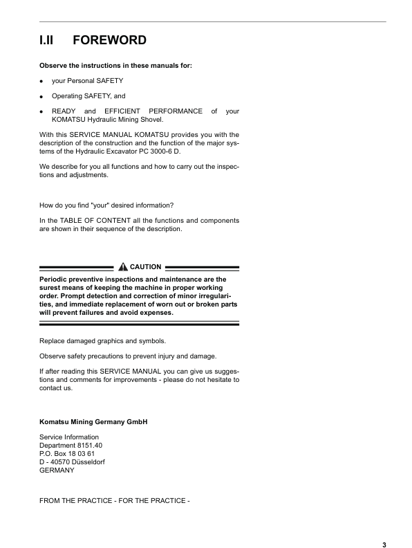 Komatsu PC3000-6 Mining Shovel Excavator Workshop Manual SN 6224 and UP
