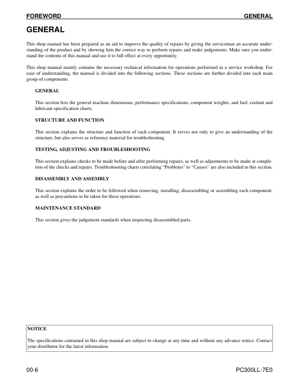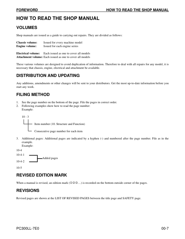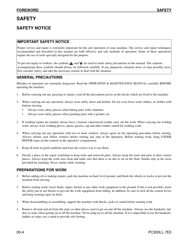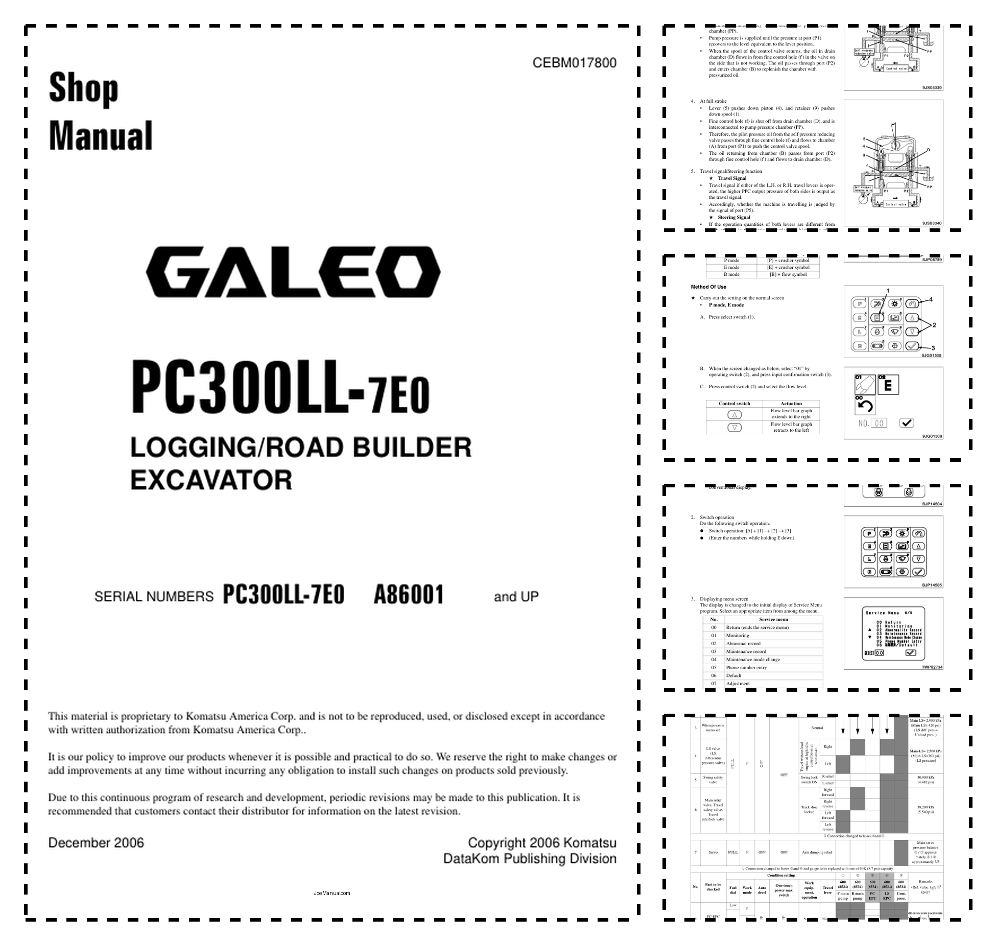 Komatsu PC300LL-7E0 Galeo Logging Excavator Workshop Manual SN A86001 and UP