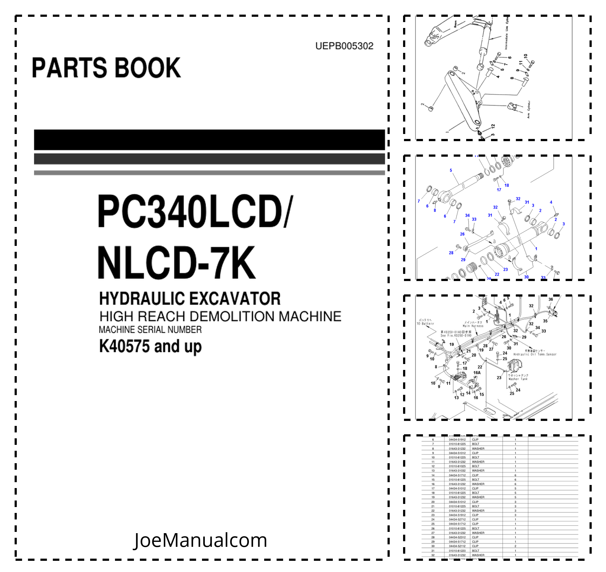 Komatsu PC340LCD NLCD-7K Excavator Parts Catalog SN K40575 and UP