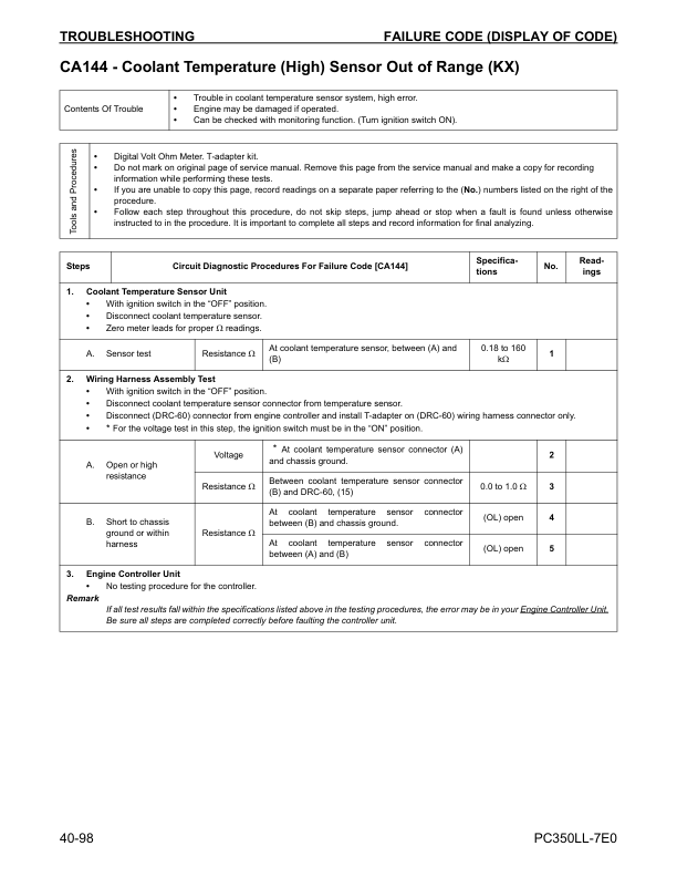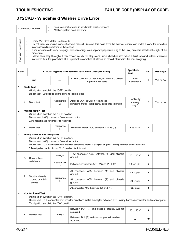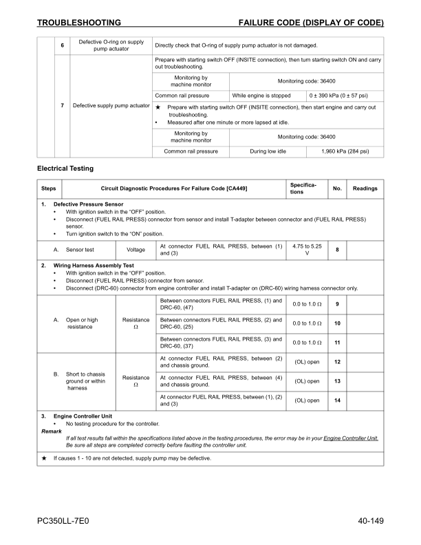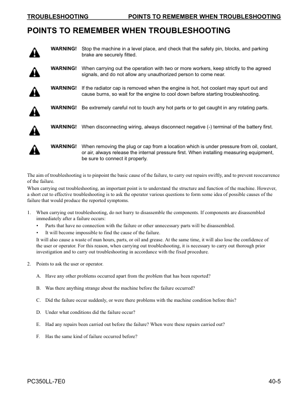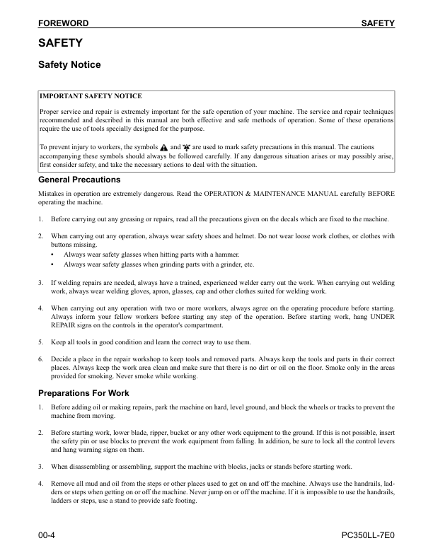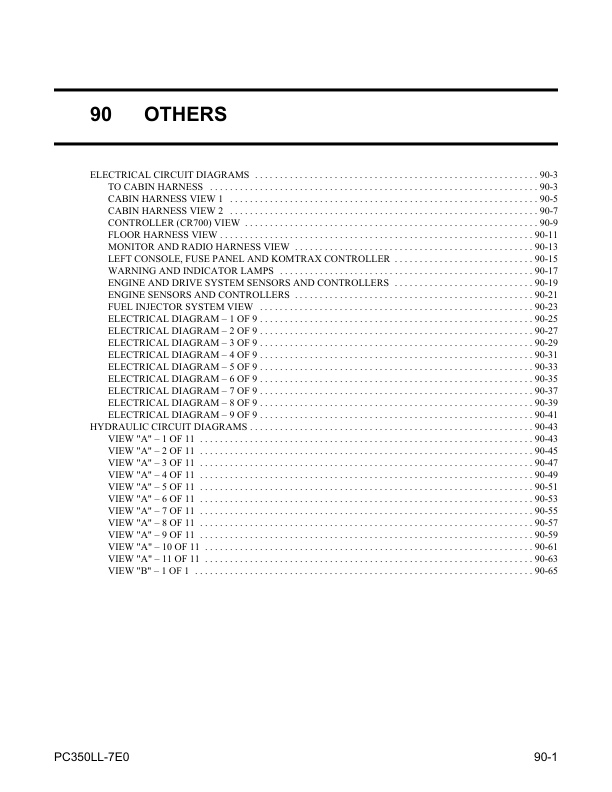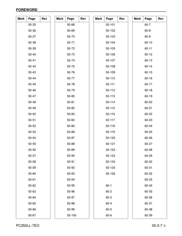 Komatsu PC350LL-7E0 Excavator Workshop Manual SN A50001 and UP