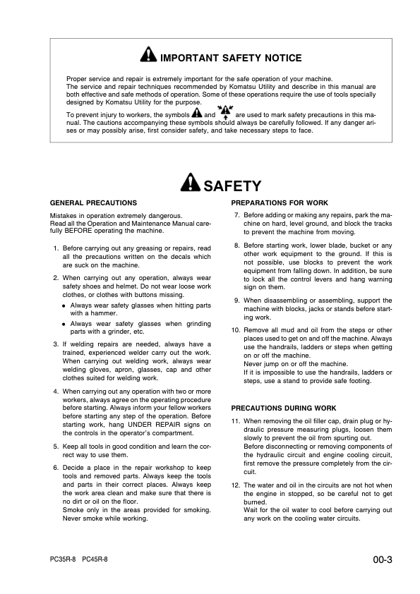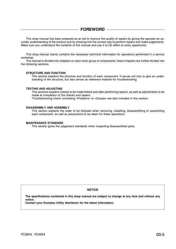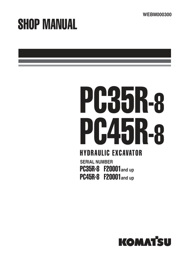 Komatsu PC35R-8 PC45R-8 Excavator Workshop Manual SN F20001 and UP