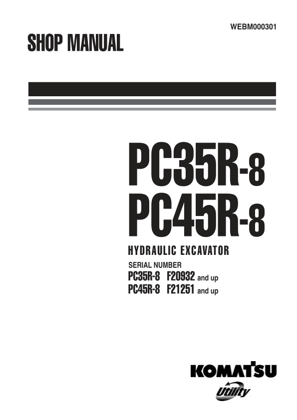 Komatsu PC35R-8 PC45R-8 Excavator Workshop Manual SN F20932 F21251 and UP
