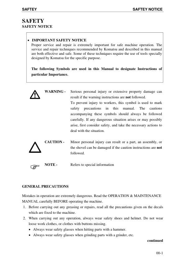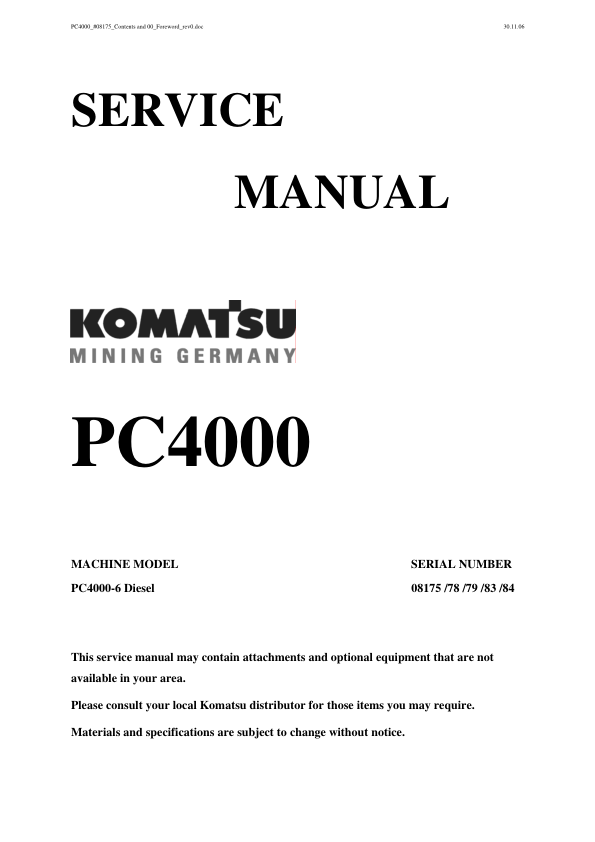 Komatsu PC4000-6 Mining Shovel Excavator Service Manual SN 08475 78 79 83 84