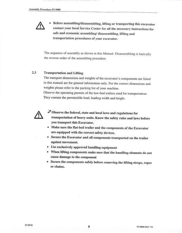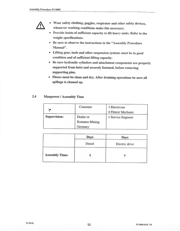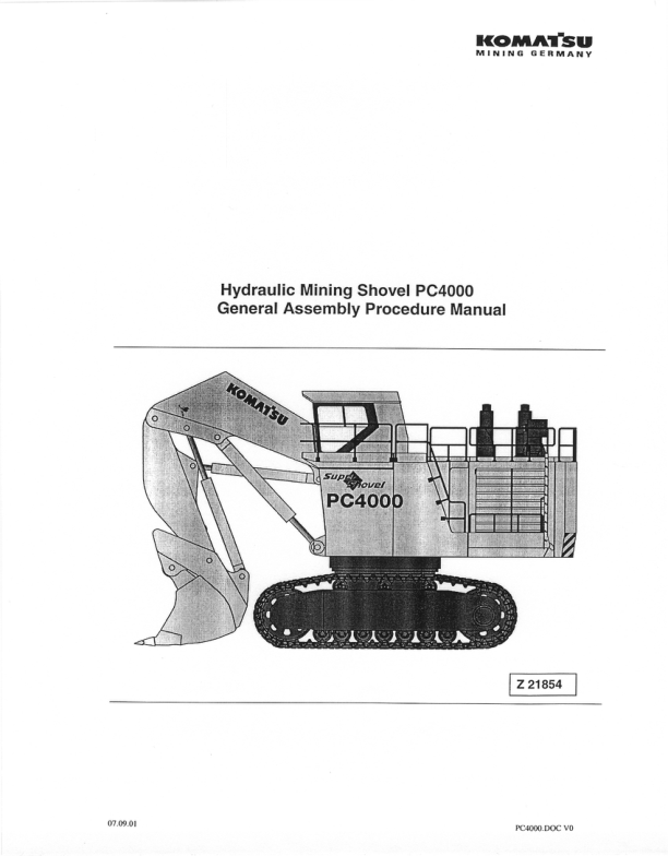 Komatsu PC4000 Mining Shovel Excavator Field Assembly Manual Z21854