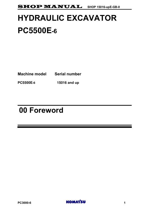 Komatsu PC5500E-6 Mining Shovel Excavator Workshop Manual SN 15016 and UP