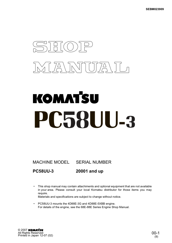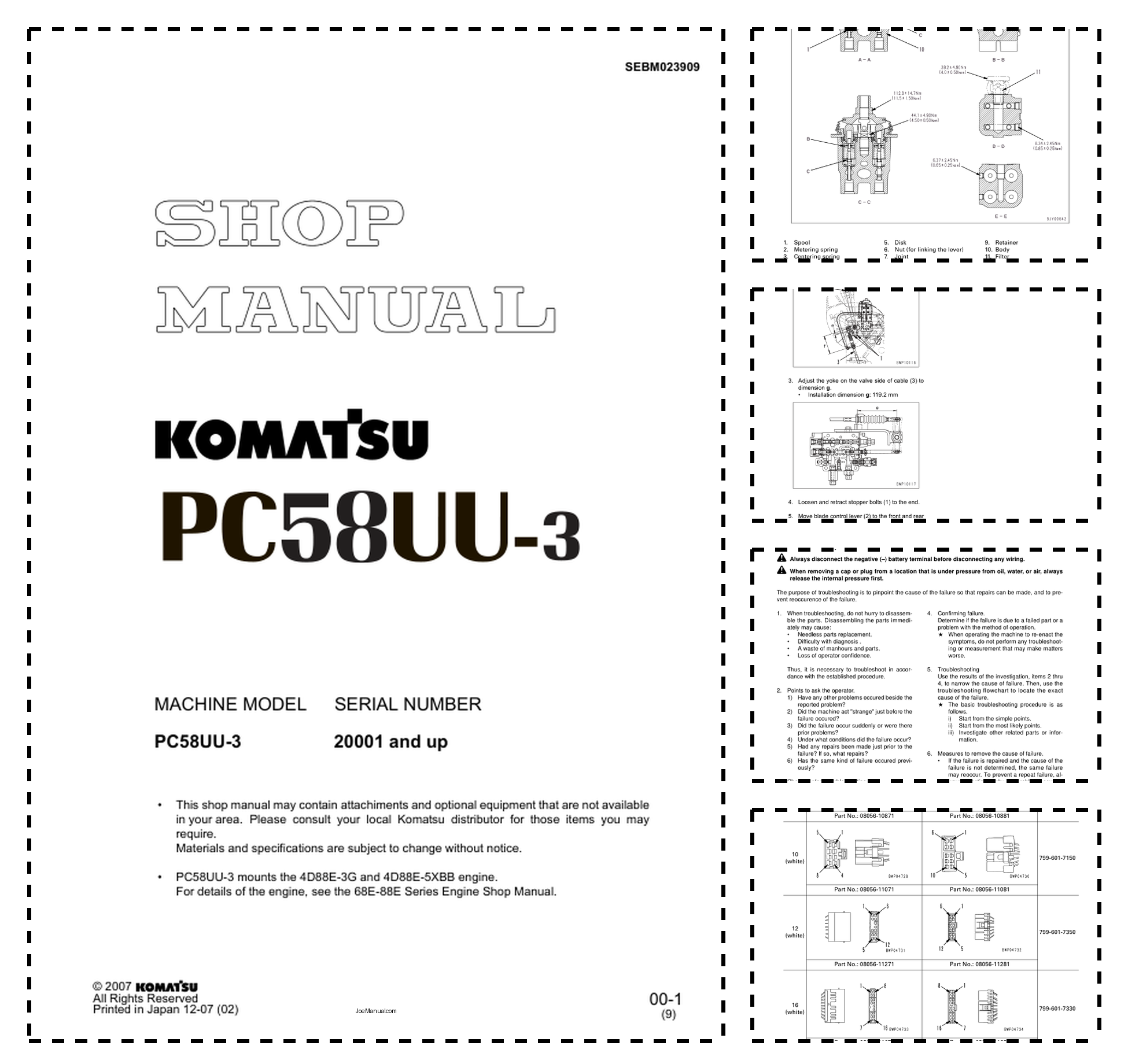 Komatsu PC58UU-3 Excavator Workshop Manual SN 20001 and UP
