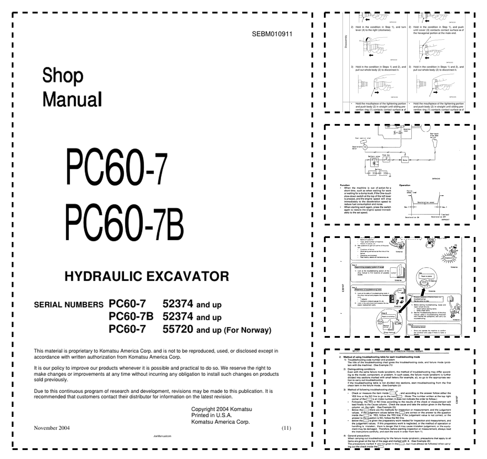 Komatsu PC60-7 PC60-7B Excavator Workshop Manual SN 52374 55720 and UP
