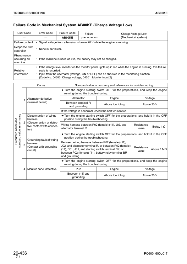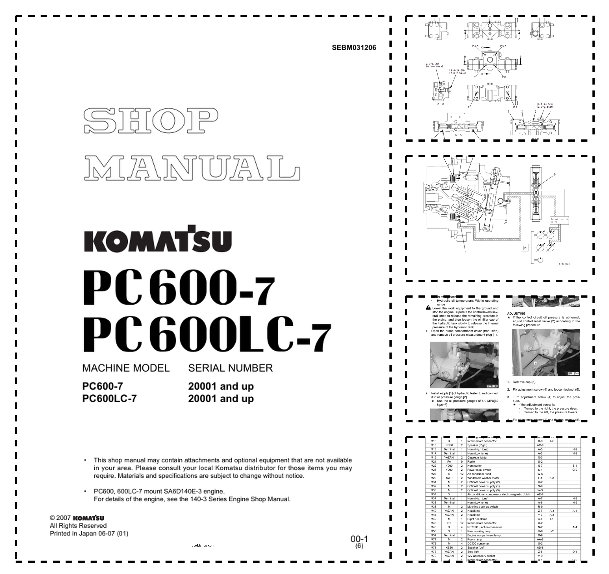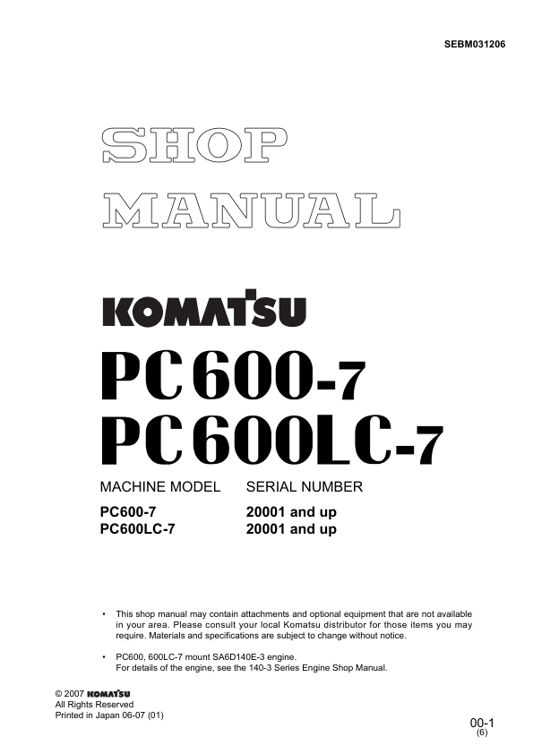 Komatsu PC600-7 PC600LC-7 Excavator Workshop Manual SN 20001 and UP