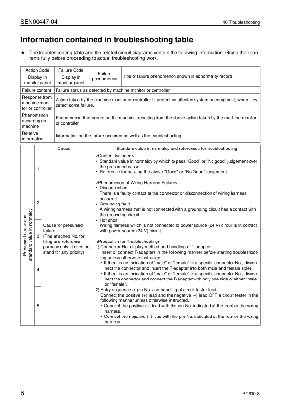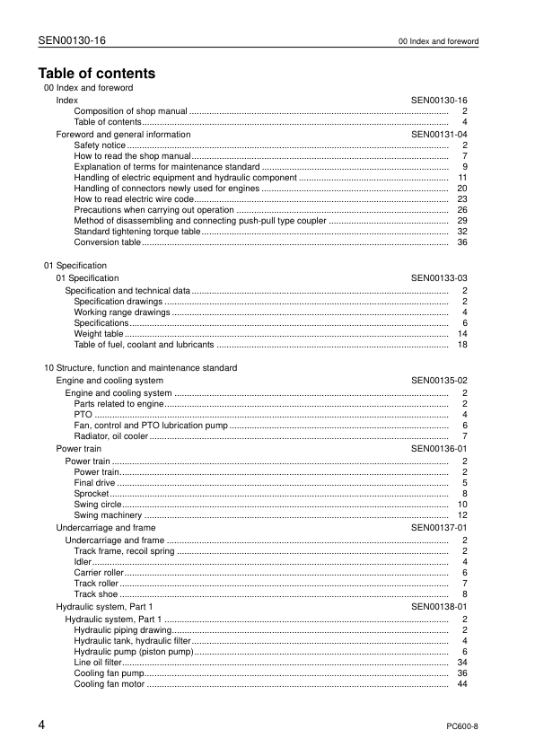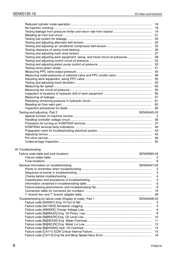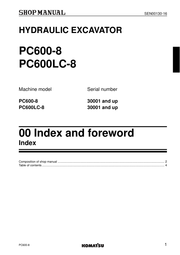 Komatsu PC600-8 PC600LC-8 Excavator Workshop Manual SN 30001 and UP