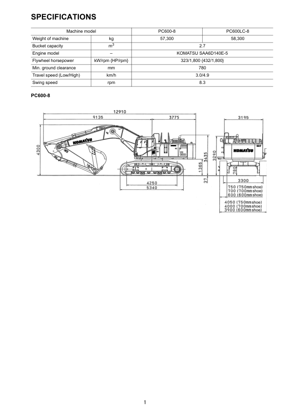Komatsu PC600-8 PC600LC-8 Excavator Workshop Manual
