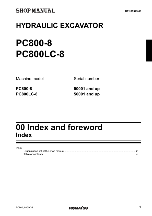 Komatsu PC800-8 PC800LC-8 Excavator Workshop Manual SN 50001 and UP