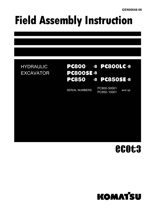 Komatsu PC800 LC SE-8 PC850 SE-8 Excavator Workshop Manual SN 50001 10001 and UP GEN0004806