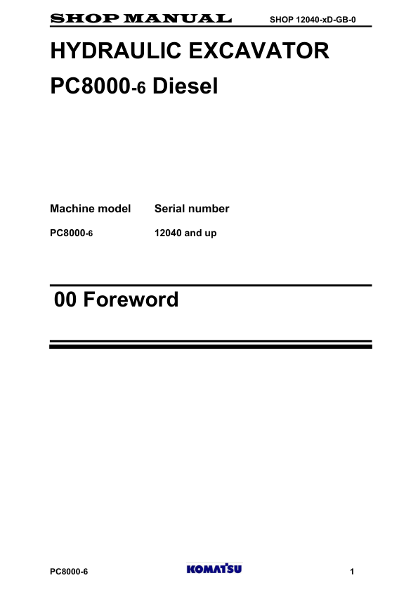 Komatsu PC8000-6 Mining Shovel Excavator Workshop Manual SN 12037 and UP