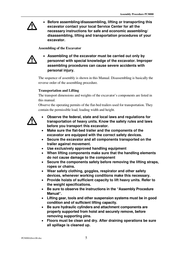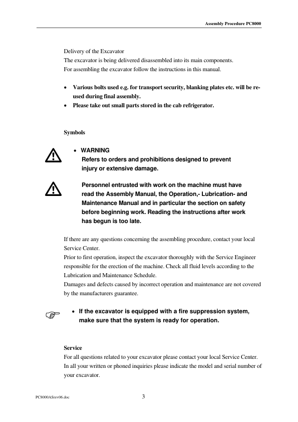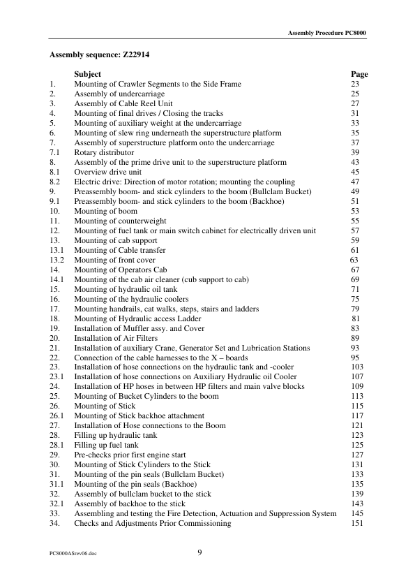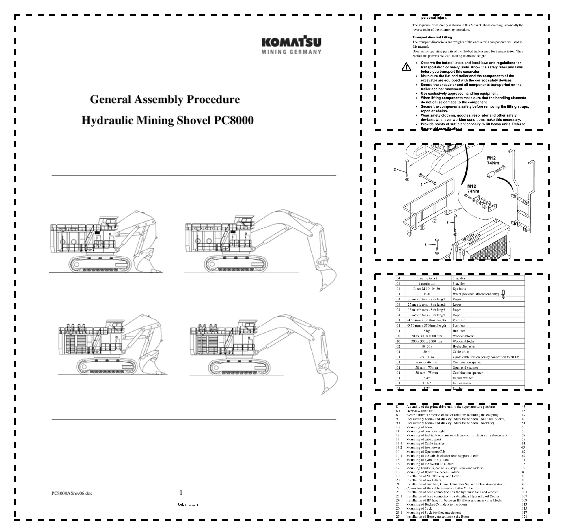 Komatsu PC8000 Mining Shovel Excavator Field Assembly Manual