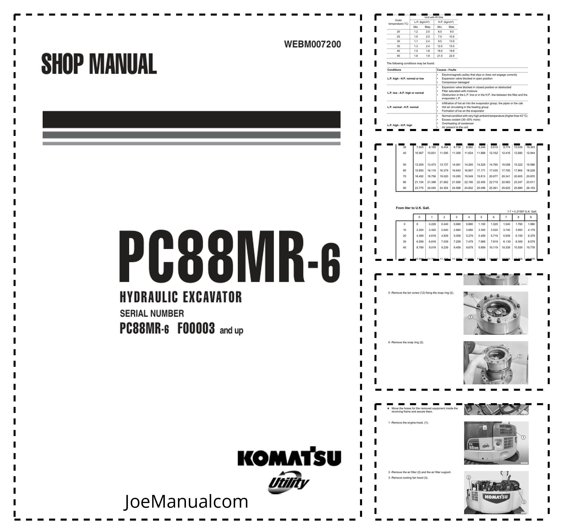 Komatsu PC88MR-2 Excavator Workshop Manual SN F00003 and UP