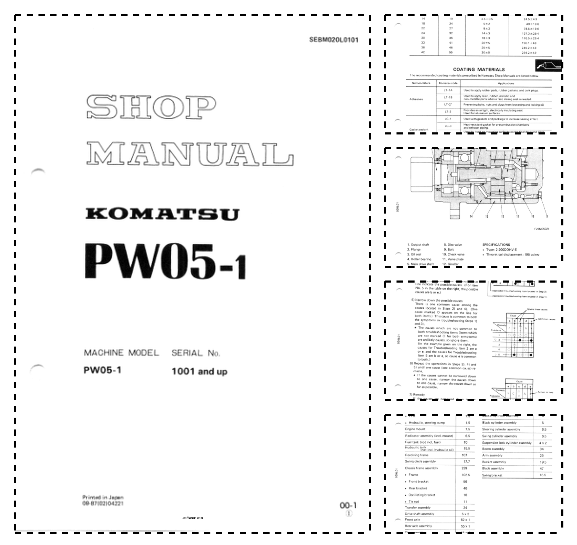 Komatsu PW05-1 Wheeled Excavator Workshop Manual SN 1001 and UP