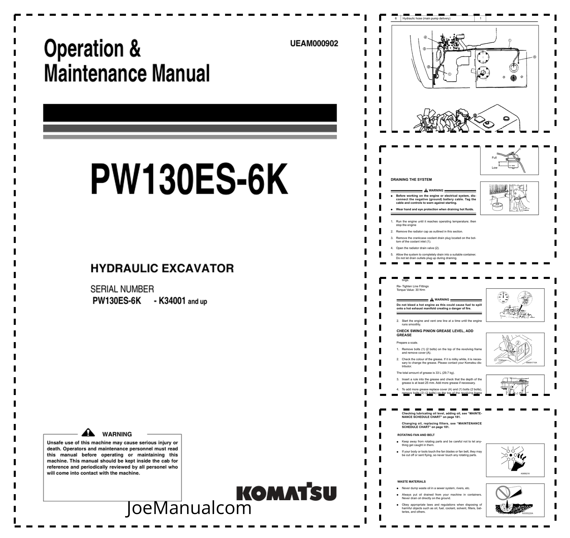 Komatsu PW130ES-6K Excavator Operation Maintenance Manual K34001 and up