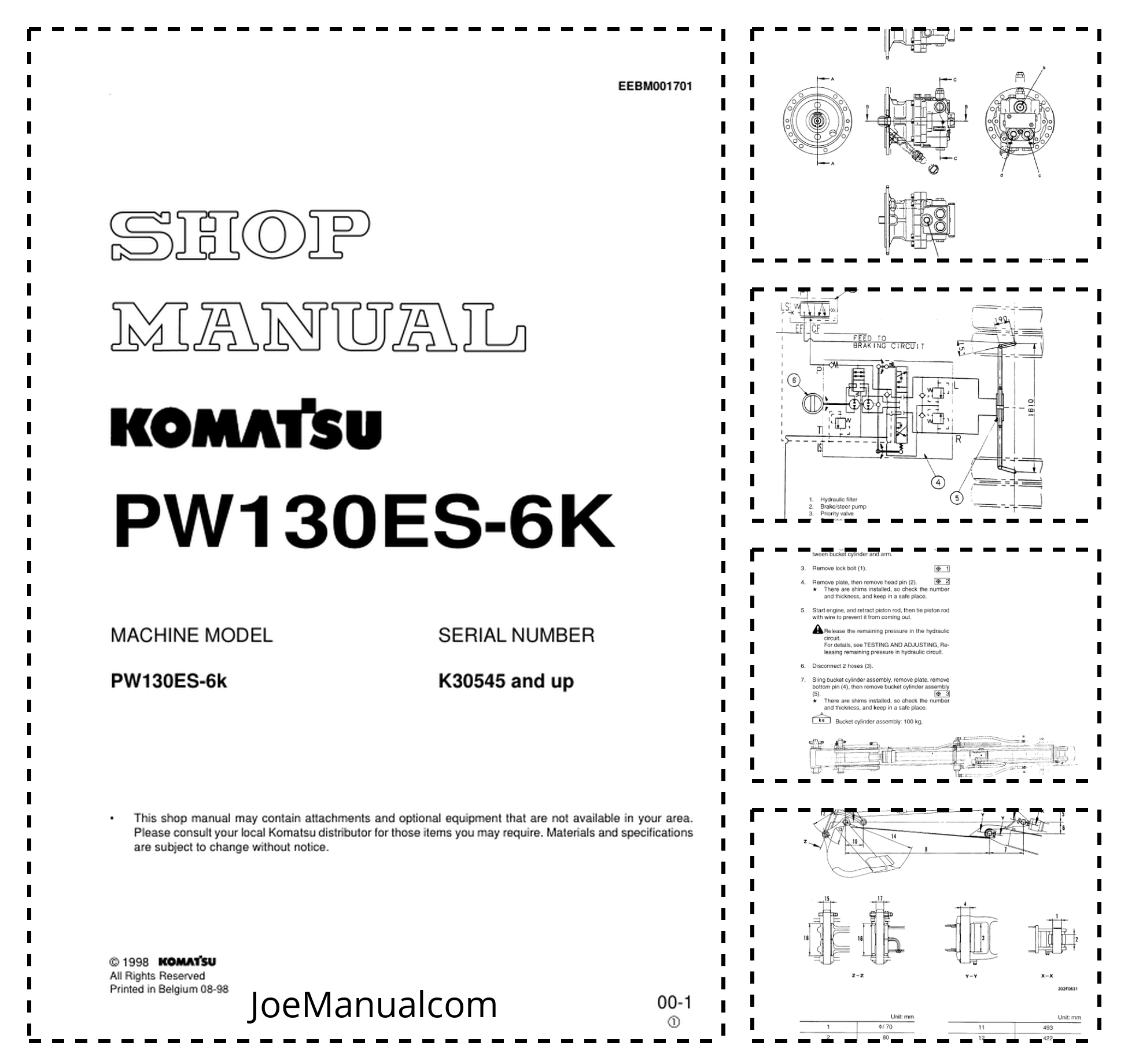 Komatsu PW130ES-6K Excavator Workshop Manual SN K30545 and UP