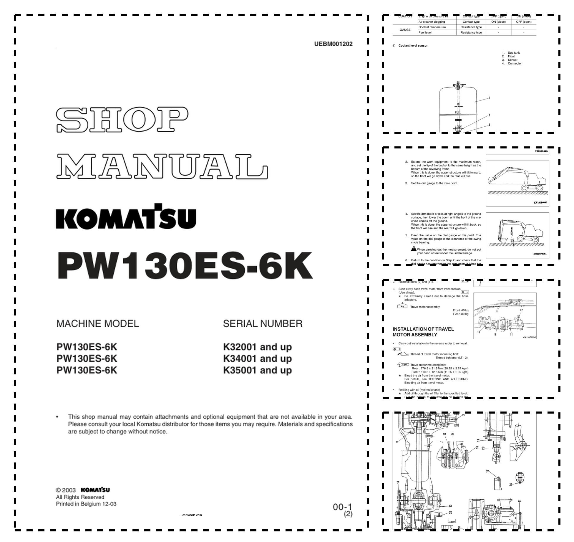 Komatsu PW130ES-6K Wheeled Excavator Workshop Manual UEBM001202