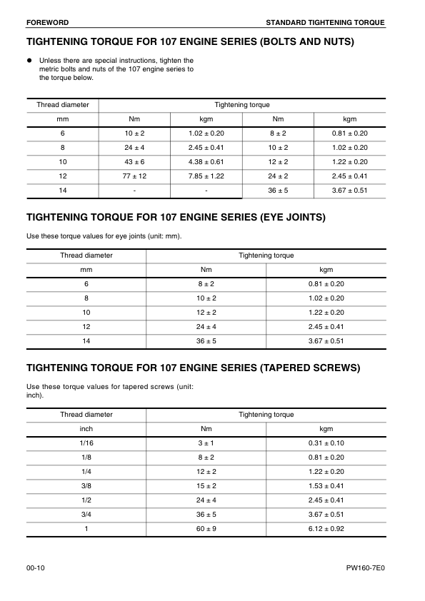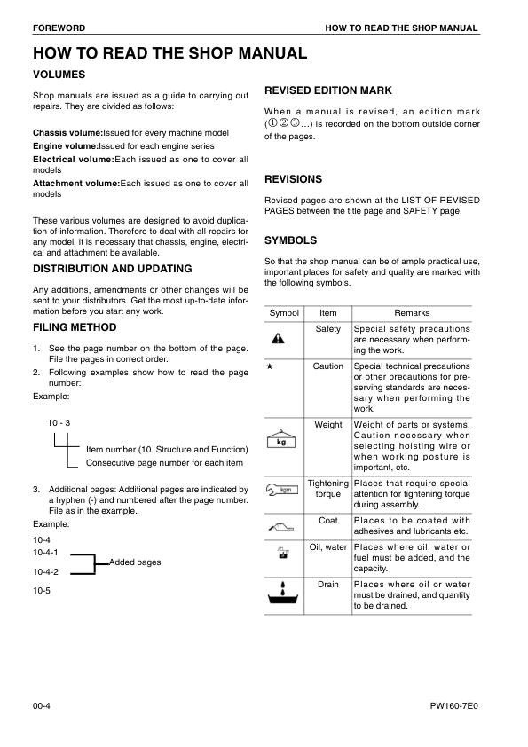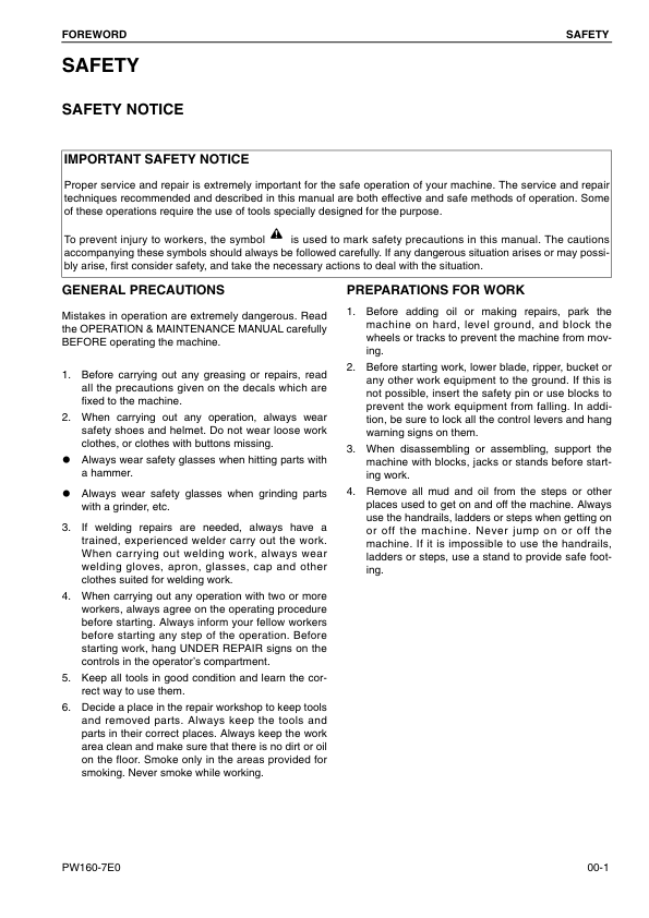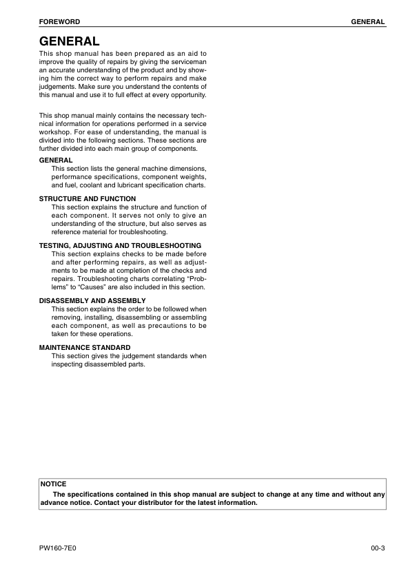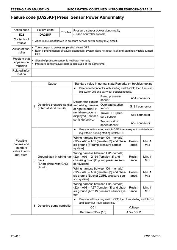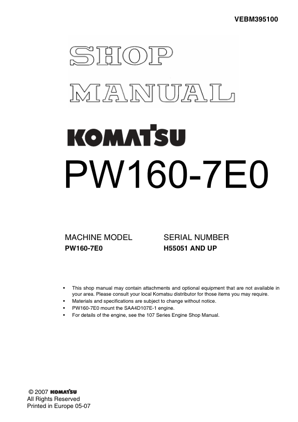 Komatsu PW160-7E0 Wheeled Excavator Workshop Manual SN H55051 and UP