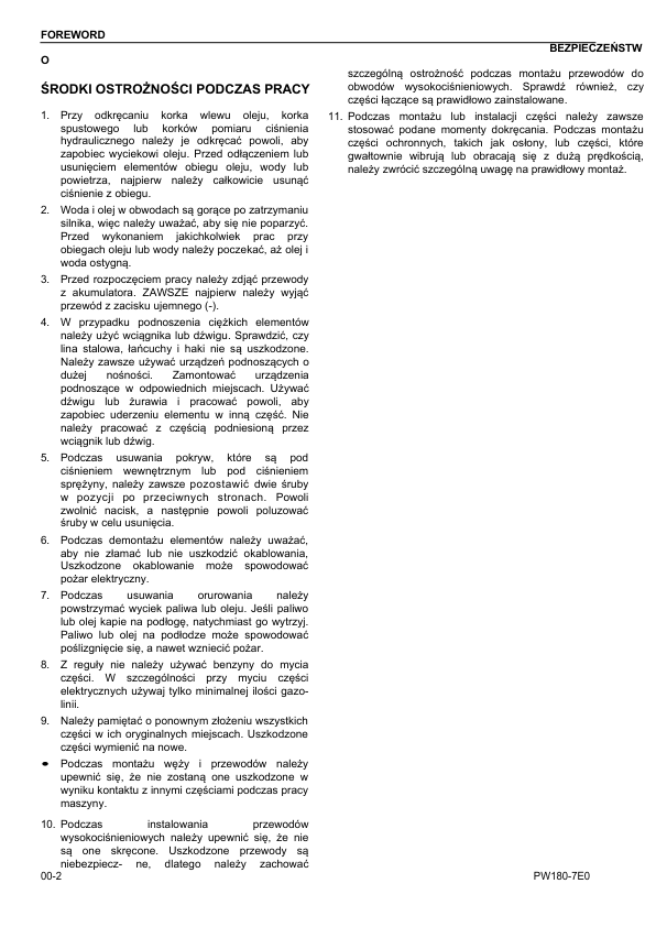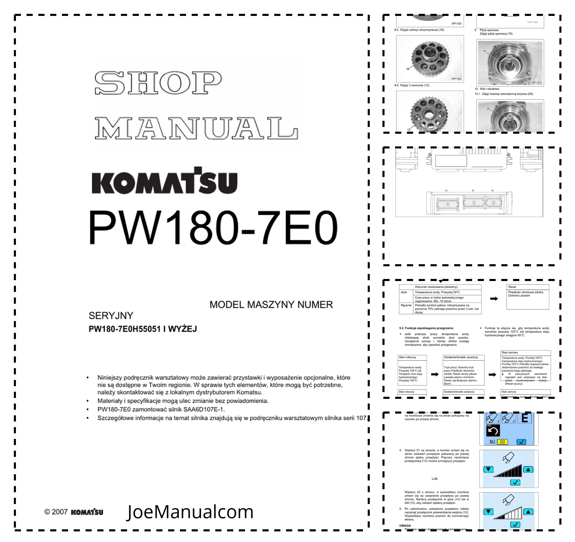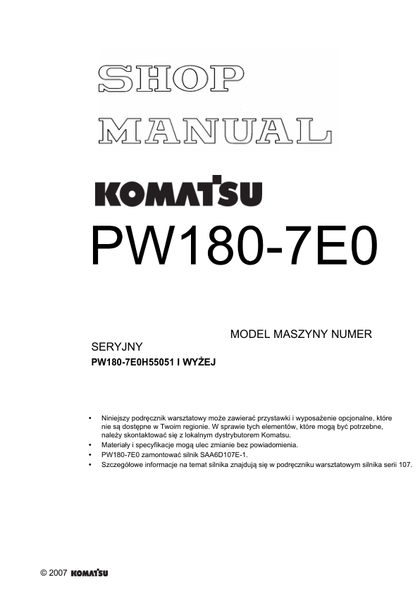 Komatsu PW180-70E Wheeled Excavator Workshop Manual PL