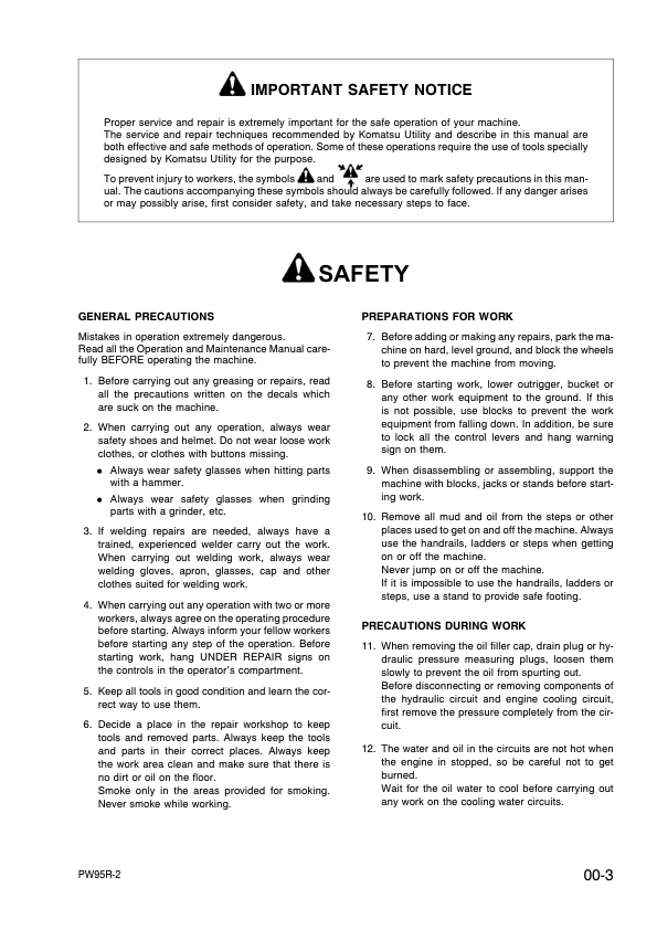 Komatsu PW92R-2 Wheeled Excavator Workshop Manual SN 21D0200280 and UP